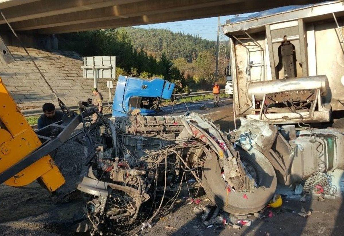 Kazada Koparak Yola Fırlayan Tırın Sürücü Kabininden Sağ Çıktı