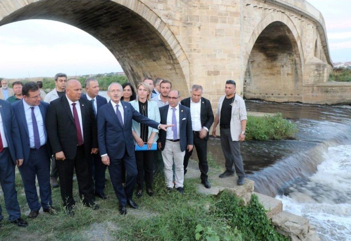 Cumhuriyet Halk Partisi (CHP) Genel Başkanı Kemal Kılıçdaroğlu, Ergene Nehri’nin temizlenmesi için yeni parlamentoya yeniden önerge vereceklerini söyledi.CHP lideri Kılıçdaroğlu, Edirne’nin Uzunköprü ve Meriç ilçelerinde, geçtiğimiz günlerde yaşanan tren faciasında hayatını kaybeden kişilerin ailelerine taziye ziyaretlerinde bulundu. Kılıçdaroğlu, Uzunköprü ilçesinden ayrılmadan önce, Ergene Nehri’nde incelemelerde bulundu.“Bu güzel ülkede, bu nehrin temiz akması lazım”CHP lideri tarihi Uzunköprü’nün hemen altından geçen bölümde yaptığı incelemenin ardından basın mensuplarına yaptığı açıklamada, “Ergene Nehri bu bölgenin can damarı. Kaynağı pırıl pırıl bir su ama burada akan su simsiyah. İçinde canlı barındırmıyor. Parlamentoda defalarca araştırma önergesi verdik. Ergene’nin temizlenmesi için ama maalesef 16 yıldır aynı siyah Ergene gerçeği ile karşı karşıyayız. Umarım bu süre içerisinde parlamento yeniden bir görev üstlenir, yeni bir araştırma komisyonuyla yürütme organına biraz daha sıkıştırır ve bu suyun temizlenmesi için. Eğer bu su temizlenirse bölgeye hayat damarı, güçlenerek akacak. Yani Ergene bölgede hayat damarı güçlenerek akacak. Pirinç tarlaları ve diğer tarım alanları gerçekten nefes alacak. Herkesin beklediği bu, Trakyalıların bekledi bu. Bizim de beklediğimiz bu. Bu güzel ülkede, bu nehrin temiz akması lazım. Marmara içinde bizim içinde doğa içinde insanlar içinde bütün canlılar için bu nehrin temiz akması gerekiyor” dedi.