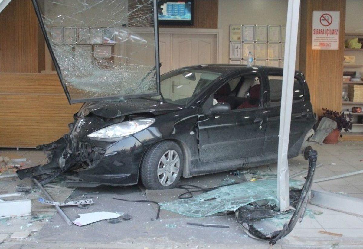 Kocaeli Başiskele ilçesinde sürücüsünün direksiyon hakimiyetini kaybettiği otomobil park halindeki araçlar çarparak, yol kenarındaki pişmaniye dükkanına girdi. Dükkandaki müşteriler ve dükkan çalışanları ölümden kıl payı kurtuldu.Kaza 20.00 sularında Başsikele D-130 karayolu Seymen mevkiinde meydana geldi. Edinilen bilgiler göre Emrehan Ç. (21) idaresindeki 06 FP 9533 plakalı otomobil sürücüsünün direksiyon hakimiyetini kaybetmesi üzerine yanlamaya başladı. Kontrolden çıkan otomobil önce park halindeki 54 EU 812 plakalı otomobile ardından da Hollanda plakalı HL-491-S plakalı lüks cipe çarptı. Hızını alamayan otomobil daha sonra pişmaniye dükkanına girdi. Olay esnasında dükkanda alış veriş yapan müşteriler ve çalışanlar kıl payı ölümden kurtuldu. Yaşanan kaza anı dükkanın güvenlik kameraları tarafından saniye saniye kaydedildi.Kazayı görenler durumu sağlık ekiplerine bildirdi. Kısa sürede olay yerine gelen sağlık ekipleri yaralı Emrehan Ç.’yi hastaneye kaldırdı. Kaza anını anlatan dükkan sahibi Hüseyin Çetin, “Biz sadece bir lastik sesi duyduk. Bir anda araba patlama sesi ile beraber içeriye girdi. Bende masada oturuyordum. Ne olduğunu anlamadık. Park halindeki arabalara vuruyor. Akıl almaz bir kaza. Allah’tan verilmiş sadakamız varmış. Bizlere bir şey olmadı” dedi.Kaza yapan araç olay yerinden çekici yardımı ile kaldırılırken, polis ekipleri kaza ile ilgilin inceleme başlattı.