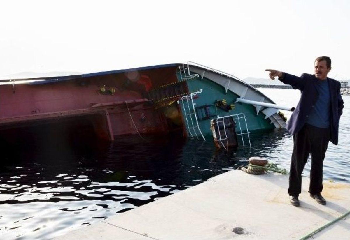 Balıkesir’in Erdek ilçesine bağlı Narlı köyünde 1 buçuk yıl önce iskelede batan kuru yük gemisi...