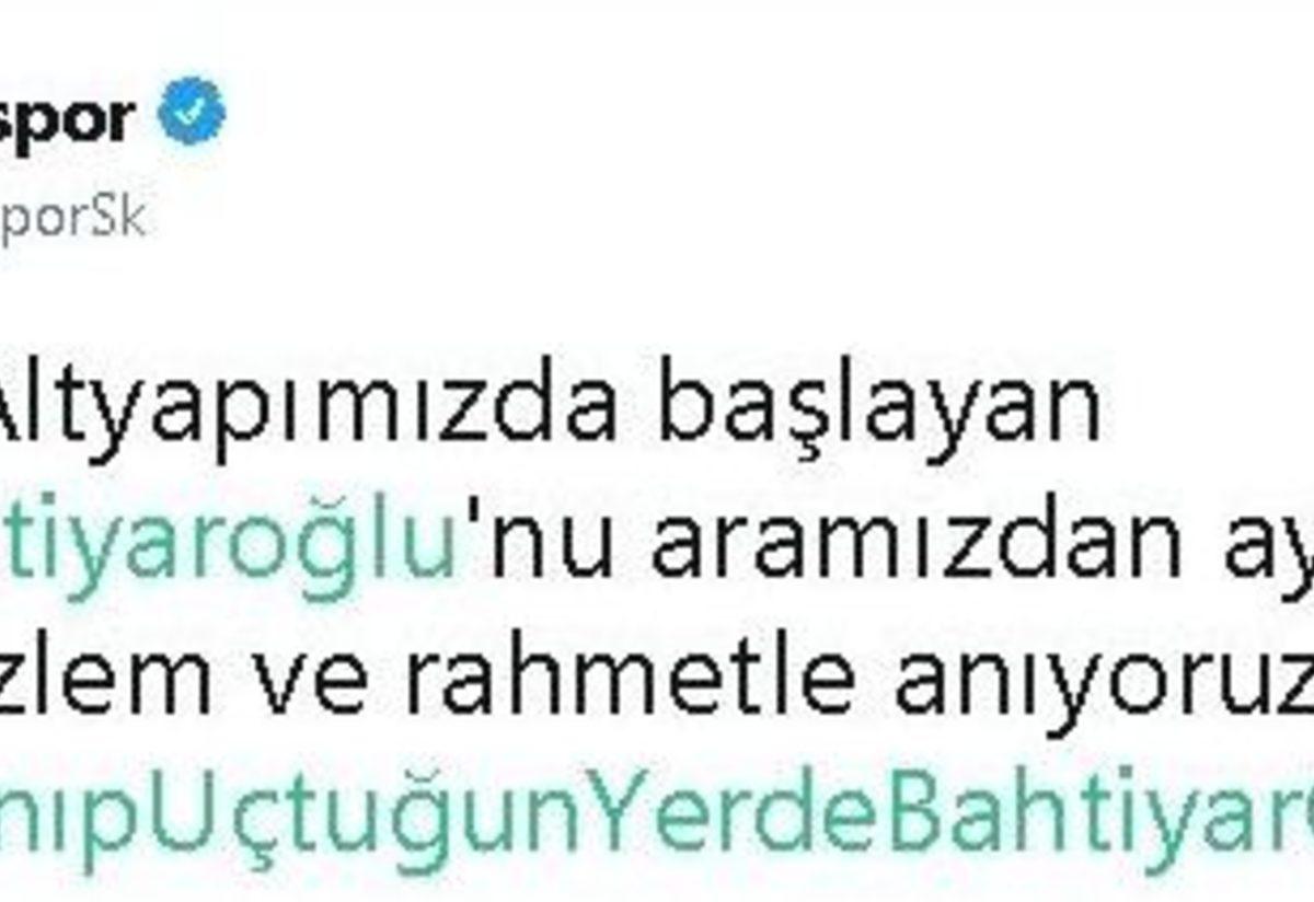 "2009-2010 sezonunda formamızı başarıyla terleten, gittiğinde ‘transfer yasağı açılsın, ilk ben geleceğim’ ifadelerini kullanan Ediz Bahtiyaroğlu’nu vefatının 6. yılında rahmetle anıyoruz"