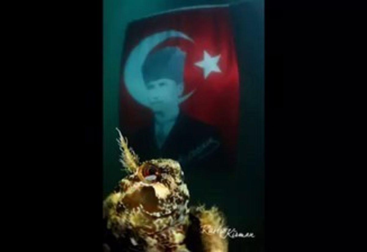 Edinilen bilgiye göre, 10 Kasım Atatürk’ü anma gününde su altında Atatürk ve bayrak içeren bir çalışma planlayan ve aynı zamanda dalgıçlıkta yapan Dr. Rüştü Kirman, su altında üzerinde Türk bayrağı da bulunan Atatürk posteri açtı. Amacının anlamlı bir anma etkinliğini gerçekleştirmek olduğunu kaydeden Dr. Kirman, Bu anmalı gerçekleştirirken, posterin açıldığı noktdada yuva yapmış bir balığın bayrak fonunda çok ilginç bir görüntü oluşturduğunu söyledi. Bir otelin deniz kıyısında çalışma yaptığını kaydeden Dr. Kirman, “ Atatürk ve Türk bayrağı motifli fotoğraf çekmeye çalışıyordum. Bir anda bir horozbina balığı ortaya belirdi. Muhtemelen iskeleden düşen şemsiye borusunun içinde yuva yapmış. O balığı özel objektiflerle görüntülerken, fondaki bayrak ile güzel bir kadraj oluşturdu. Balık sanki 10 Kasım olduğunu biliyor gibi boruya tırmandı. Yuvaya girdikten sonra ise görüntüsüyle saygı duruşunda durur gibiydi. Tesadüfün bu kadarı deyip, bu anları ölümsüzleştirdim" diye konuştu.