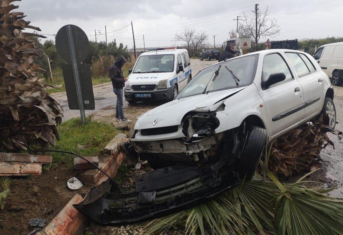 Kaza Davutlar Mahallesi’nde saat 14.30’da meydana geldi. Edinilen bilgiye göre Davutlar’dan Güzelçamlı istikametine giden Ferit T. idaresindeki 09 FM 960 plakalı otomobil, Milli Park Caddesi üzerinde kayganlaşan zeminde direksiyon hakimiyetini kaybederek orta refüjde bulunan palmiye ağaçlarına çarptı. Ağaçla beraber 25 metre sürüklenen otomobil kavşağa çarparak durabildi. Kazada otomobil sürücüsü Ferit T. yaralandı. kaza ihbarı üzerine bölgeye 112 Acil Sağlık ekipleri sevk edildi. Kazada yaralanan Ferit T. ambulansla Kuşadası Devlet Hastanesi’ne kaldırılarak müşahede altına alındı.