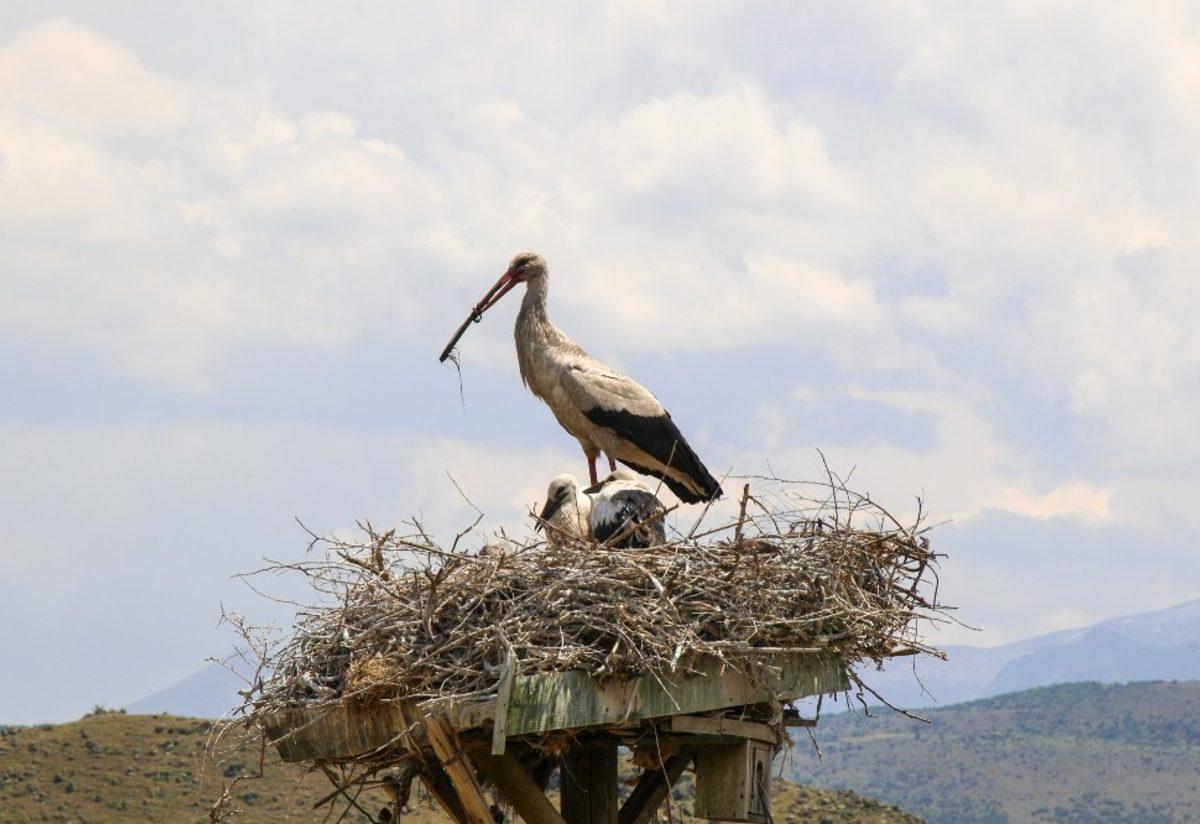 Mart ayından itibaren binlerce kilometre uzaklıktan Hürmetçi Sazlığı’na gelen leylekler her yıl aynı yuvalara yerleşiyor. Leylekler, Hürmetçi Sazlığı’nın sulak alanında besleniyor ve uzun yolculuklarında bir süre mola veriyor.
