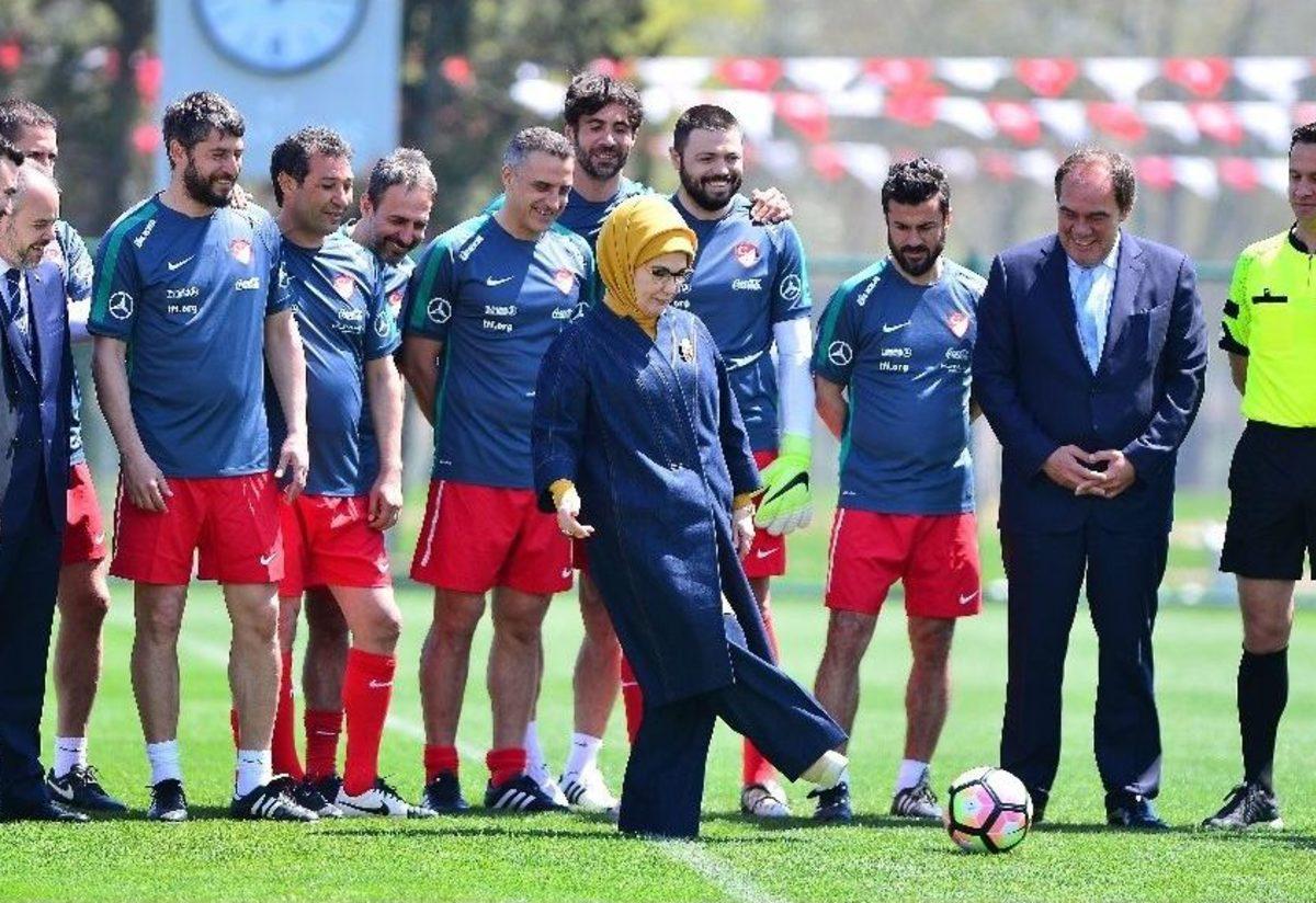 Cumhurbaşkanı Recep Tayyip Erdoğan’ın eşi Emine Erdoğan, 1. Spor ve Kültür Şenliği sonrası düzenlenen maçta başlama vuruşunu yaptı.Suriyeli ve Türk çocukların kaynaşmasını amaçlayan "Bir umut, Bir ufuk " projesi kapsamında Türkiye Futbol Federasyonu ve Toplumsal Gelişim Merkezi Eğitim ve Sosyal Dayanışma Derneği (TOGEMDER) işbirliği ile gerçekleştirilen "1. Spor ve Kültür Şenliği" Riva’daki Hasan Doğan Milli Takımlar Kamp ve Eğitim Tesisleri’nde yapıldı. 1. Spor ve Kültür Şenliği’ne Cumhurbaşkanı Recep Tayyip Erdoğan’ın eşi Emine Erdoğan, Gençlik ve Spor Bakanı Akif Çağatay Kılıç, TFF Başkanı Yıldırım Demirören, TFF Başkan Vekili Servet Yardımcı, Türkiye Futbol Federasyonu Yönetim Kurulu Üyeleri, Türkiye Futbol Direktörü Fatih Terim, Kulüpler Birliği Başkanı Göksel Gümüşdağ, TOGEMDER Başkanı Saadet Gülbahar ile davetliler katıldı.Etkinlikte şöhretler karması, Türk ve Suriyeli çocuklardan kurulan minik takımlar gösteri maçında karşı karşıya geldi. Maç başlamadan önce Emine Erdoğan, Suriye’de iç savaştan gelip Türkiye’ye sığınan ve Türk vatandaşlığına geçen Adem Metin Türk ile fotoğraf çektirdi. U14 milli Takımı’na da alınan Adem Metin, Emine Erdoğan’a kısa bir gösteri yaptı. Eğlenceli anlar dikkat çekerken, Emine Erdoğan daha sonra Adem Metin’e sarılarak genç sporcuyu tebrik etti. Ardından gerçekleşen şöhretler karması ve Türk ve Suriyeli çocuklardan kurulan minik takımların gösteri maçı öncesi santraya gelen Emine Erdoğan burada santra vuruşunu yaparak maçı başlattı. Eski futbolcular ve çocuklar burada Emine Erdoğan ile hatıra fotoğrafı çektirdi.