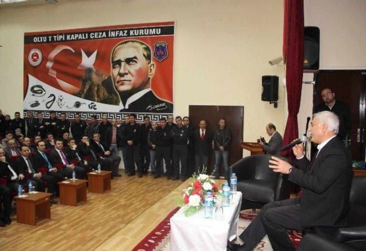 Oltu T Tipi Kapalı Ceza İnfaz Kurumunda yılın son etkinliği yapıldı. Kurum Eğitim Birimi tarafından organize edilen etkinliğe katılan İlahiyatçı Prof.Dr. Nihat Hatipoğlu, cezaevinde bulunan tutuklu ve hükümlülere konferans verdi.Tutuklu ve hükümlülere Oltu T Tipi Kapalı Ceza İnfaz Kurumunda bir konferans veren Prof.Dr. Hatipoğlu, kader, ölümden sonraki hayat, sabır, vicdan, ahlak ve Mekke’nin fethi konularını anlattı.Oltu T Tipi Kapalı Ceza İnfaz Kurumunda gerçekleştirilen konferansa; Oltu Belediye Başkanı İbrahim Ziyrek, Oltu Cumhuriyet Başsavcısı Gültekin Bülbül, Adli Yargı Adalet Komisyonu Başkanı Hasan Kol, Oltu Adliyesi Hâkim ve Savcıları, Kurum Müdürü Selahattin Tutkun, kurum personeli ve çok sayıda hükümlü tutuklu katıldı.Prof. Dr. Nihat Hatipoğlu konferansta, hükümlü-tutuklular tarafından yöneltilen soruları da yanıtladı. Peygamber Efendimizin hayatından örnekler veren Hatipoğlu yaklaşık bir saat boyunca tutuklu ve hükümlülere manevi destek verdi. Mahkumlara sabır dileyen Hatipoğlu, onlarla birlikte dua etti.Oltu Cumhuriyet Başsavcısı Gültekin Bülbül, eğitim faaliyetlerine yaptığı katkılarından dolayı Prof. Dr. Nihat Hatipoğlu’na bir teşekkür plaketi ve Oltu taşı tespih hediye etti.Konferans bitimine müteakiben Kurum Müdürü odasına geçen Hatipoğlu ve beraberindekiler hatıra fotoğrafları çektirerek kurumdan ayrıldı.