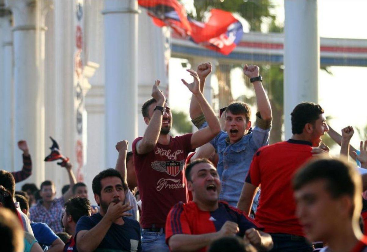 MERSİN - Mersin İdmanyurdu'nun PTT 1. Lig play-off finalinde Samsunspor'u yenerek Süper Lig'e yükselmesi kentte coşkuyla kutlandı. Şükrü Saraçoğlu'nda oynanan karşılaşmayı sahildeki Mersin İdmanyurdu Meydanı'na kurulan platformdan izleyen kırmızı lacivertli taraftarlar, galibiyetin ardından büyük sevinç yaşadı. Takımlarının Süper Lig'e yükselmesini yaktıklarını meşalelerle kutlayan taraftarlar, dans ederek ve marş söyleyerek Süper Lig'e 'merhaba' dedi. Taraftarlar, havai fişek gösterisinin ardından Mersin İdmanyurdu bayrağı astıkları araçlarıyla şehir turu yaptı.
