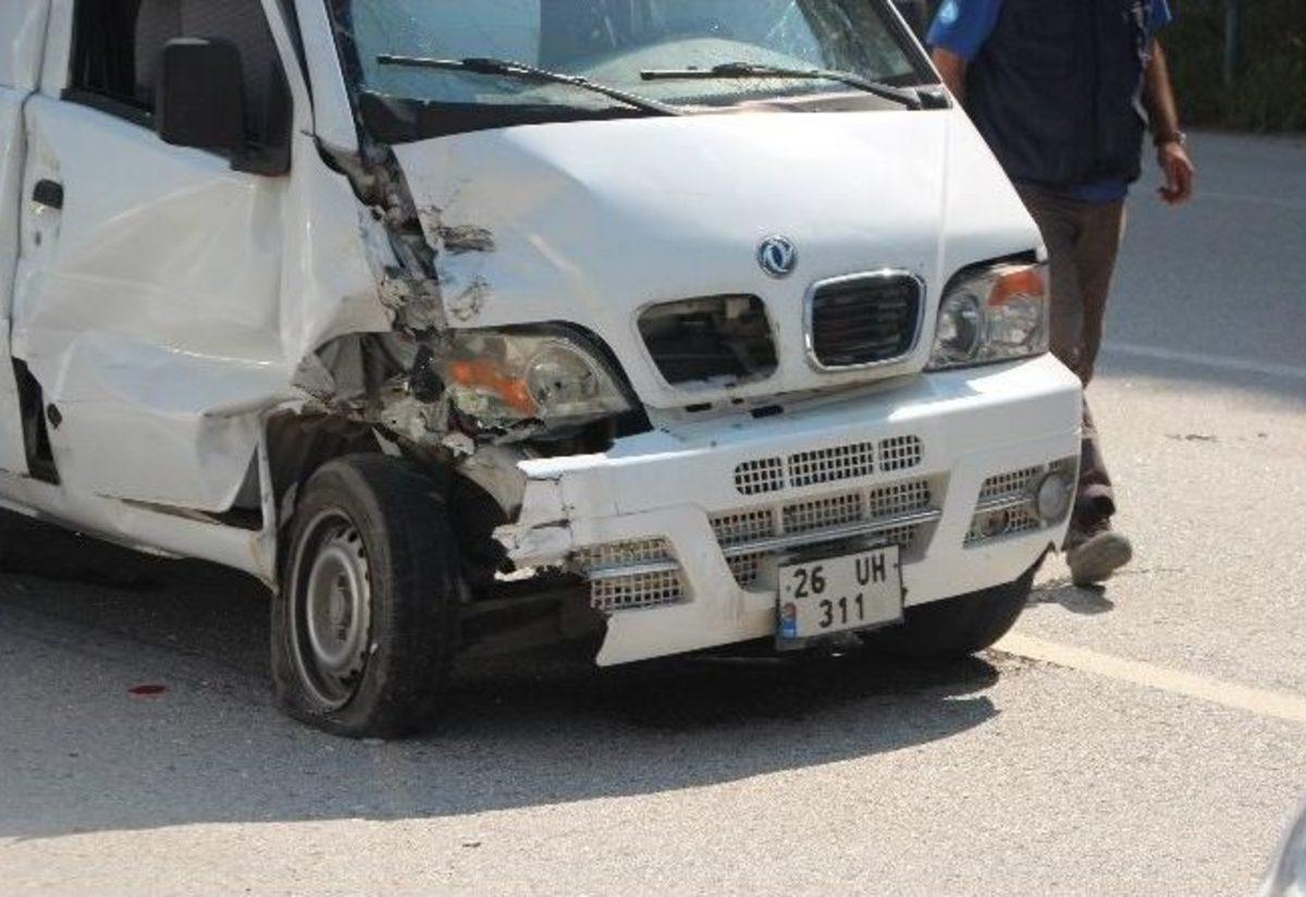 Bilecik’te, bir minibüsün park halindeki hafif ticari araca çarpması sonucu meydana gelen trafik kazasında 2...