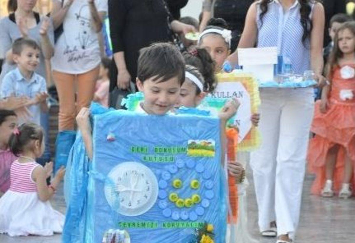 Bursa’nın İnegöl ilçesinde geri dönüşümden yapılan kıyafetlerle podyuma çıkan minikler mankenlere taş çıkarttı.
