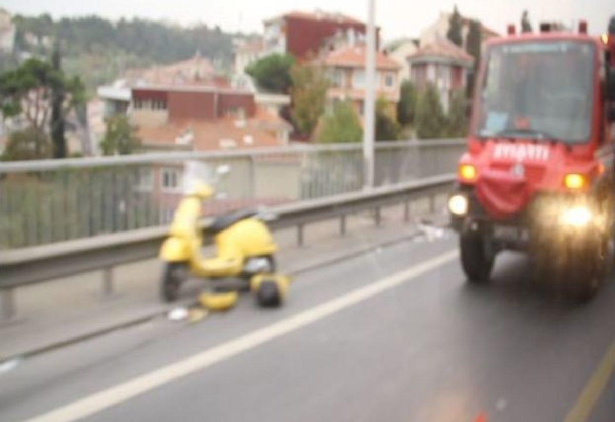 Boğaziçi Köprüsü'nde, aralarında resmi motorize trafik polisi ekiplerinin de bulunduğu üç motosikletli, kaza yaptı. Kazada...