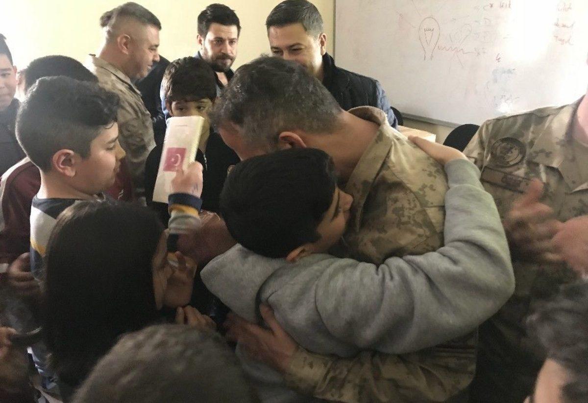 Gaziantep’te ilk ve ortaokul öğrencileri, Afrin’de destan yazan Mehmetçik için duygularını dile getirdiği mektuplar yazdı. Öğrencilerin kaleme aldığı 433 mektup, "emanetimiz emanetinizdir" denilerek Gaziantep İl Jandarma Komutanlığı ekiplerince teslim alındı.Gaziantep’te bulunan Ömer Asım Aksoy İlk ve Ortaokulu öğrencileri, Afrin’de Zeytin Dalı Harekatı’nı yürüten Türk Silahlı Kuvvetleri personeli için duygu ve temennilerini dile getiren mektuplar yazdı. Okul idaresi tarafından Gaziantep İl Jandarma Komutanlığına ulaşıldı. Komutanlık personeli tarafından okulda gerçekleştirilen törenle, öğrencilerin yazdığı toplan 433 mektup “Emanetiniz, emanetimizdir” denilerek teslim alındı.Mektuplar duygulandırdıMektupların teslim edildiği programda öğrenciler, dizelere döktüğü satırları ise asker ağabeylerine okudu. 6. Sınıf öğrencisi Zeynep Sude Aytaç, 5. Sınıf öğrencisi Ecem İlke Demir’in kaleme aldığı mektuplardan bazıları, programda okundu. Okunan mektuplar, başta jandarmalar olmak üzere salonda bulunan herkese duygusal anlar yaşattı. Programda Mehmetçiğe ithafen şiirler okurken, kimileri ise mektuplarını çizdikleri Türk bayrağı ile süsledi.Sloganlar da yazdılarÖğrencilerin mektuplarında “Anaların babaların gözyaşları sel oldu, çocukları eşleri hepsi bir vatan oldu, Şehitler Ölmez, vatan bölünmez. Bu vatan sizler sayesinde ayakta duruyor. Bizi kurtaran şehitler, canlarını feda ettiler. Bu vatan bizimdir ferman gerekmez, askerin olduğu yere yabancı giremez” gibi özlü sözler ve sloganlar da yazarak, Mehmetçiğe moral verdi.Öğrencilerden Zeynep Suda Aytaç’ın “Vatan yoluna baş koymuş bu uğurda şehit olmuş, canparelerime sesleniyorum" diyerek başladığı mektubunda, "Siz nasıl ki bu vatan için ’vatanımın ha ekmeğini yemişim, ha uğrunda bir kurşun’ diyerek, gül bahçesine girer gibi kara toprağa giren şehitlerim. Kim bilir insanlar kaçıncı uykularında, ’rahat uyusun’ diye siz kara toprağın altına girdiniz. Kiminiz kefenli, kiminiz kefensiz. Adınıza şehit dediler. Herkes sustu gözlerde yaş, yüreklerde sızı oluştu. Ananız, babanız eşiniz, çocuğunuz doyamadılar. Sizin o gül yüzünüze. Geride kalanlar hasret kaldılar, tek sözünüze. Mevzu vatan ise gerisi teferruattır diyen canlar, oldukça, bu vatanın bir karış toprağını kimseler bizden alamaz, sen rahat uyu şehidim. Al bayrağa sarılı tabutun, omuzlarda taşınırken gülümsüyorsun, biliyorum. Ben mertebelerin en güzeline şehitlik mertebesine eriştim. ’Bir daha dünyaya gelsem bu vatan için düşünmeden canımı veririm’ dediğini duyar gibiyim. Emanetini koruyup kolladığını bu topraklar senden sonra Türk gençliğine emanettir. Biliyorum kanın hala kurumadı, kurumayacak da, Ay yıldızlı bayrağıma rengini vermiş bir kere. Ama şunu bil ki yaşadığım müddetçe canım seninki gibi feda olsun bu vatana. Sen rahat uyu şehidim, hakkımız helaldir sana” ifadeleri yer aldı.Öğrencilerden zeytin dalıJandarma ekipleri tarafından Ortaokul Müdürü Ferudun Palamut’a Türk bayrağı verilirken, öğrenciler ise mektuplarla birlikte çiçek ve zeytin dalları verdi. Organizasyondan haberi olan işadamı Habip Şahan tarafından ise etkinliğe katılan tüm öğrencilere Türk bayraklı ajanda verilerek, çikolata ikram edildi. İşadamı Şahan tarafından etkinliği organize eden okul öğretmenlerinden Hatice Erdem’e ise teşekkür plaketi ve kalem hediye edildi.Mektupları teslim alan askerler ise mektupların asıl sahiplerine en kısa sürede teslim edileceğini ifade etti.