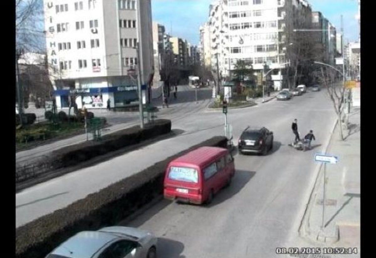 Eskişehir’de, son 3 ayda meydana gelen bazı trafik kazaları MOBESE kameraları tarafından saniye saniye kaydedildi. Bir görüntüde hızla üzerilerine doğru gelen otomobilden son anda kurtulan bir çift ise adeta ölümle burun buruna geldi.İlk görüntüde yol kenarında yürüyen bir çift, sürücüsünün direksiyon hakimiyetini kaybettiği bir otomobilin altında kalmaktan son anda kurtuluyor. Hızla gelen motosiklet sürücüsünün, trafik ışıklarından geçmek isteyen bir kişiye çarpmamak için manevra yaptığı sırada motosikletten düşmesi ve kaza sırasında savrulan motosikletin karşıdan karşıya geçmek isteyen şahsa çarpması da kameralar tarafından kaydedildi. Bir başka görüntü de, kırmızı ışıkta bekleyen bir sürücü kursuna ait midibüs, sinyal vermeden şerit değiştirince arkasından gelen otomobille çarpışıyor.Kameralara yansıyan diğer görüntülerde ise, kazaların birçoğunun dikkatsizlik, tedbirsizlik ve kural ihlallerinden kaynaklandığı görülüyor.