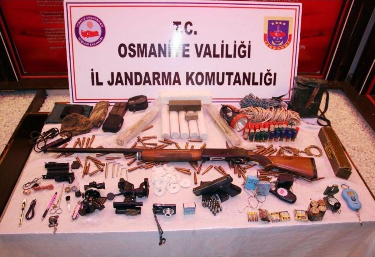 Osmaniye’de PKK’lı teröristlere yönelik operasyonda bir sığınakta havan, anti tank roketi ile 5 kilogram TNT, el yapımı patlayıcı yapımında kullanılan malzeme ile çok sayıda mühimmat ele geçirildi.Edinilen bilgiye göre, İl Jandarma Komutanlığınca Amanoslar Bölgesinde BTÖ’ye yönelik kış üslenmelerinin tespiti maksatlı operasyonel faaliyetler sırasında İl Merkez Jandarma Komutanlığı sorumluluk sahasında bulunan Yarpuz Köyü Kösür Dağı mevkiinde bir sığınak tespit edildi.Amanosların Osmaniye sınırları içinde kalan kısmında jandarma ekiplerinin arama tarama faaliyetleri sırasında bulunan terör örgütü PKK’ya ait sığınakta, havan, anti tank roketi ile 5 kilogram TNT, el yapımı patlayıcı yapımında kullanılan malzeme ile çok sayıda çeşitli mühimmat ele geçirildi.Sığınakta gerçekleştirilen aramada 150 litrelik 3 ve 25’er litrelik 2 bidon içinde 1 adet 60 milimetrelik havan, 1 havan nişangahı, 1 havan üçayağı ve dip tablası, 2 anti tank roketi, 5 RPG roket atara ait sevk fişeği, 1 roketatar dürbünü ve adaptörü, 5 kilogram TNT (patlayıcı), 1 tabanca, 40 5,56 fişek, 1 otomatik av tüfeği, 3 avcı yeleği, 120 metre kablo, 2 el yapımı patlayıcı düzeneği, 1 fotoğraf makinesi, 1 kütüklük, dijital tartı ve bol miktarda yaşam malzemesi ele geçilirdi.Bölgede BTÖ mensuplarına yönelik tespit ve yakalama faaliyetlerine kararlılıkla devam ettiği kaydedildi.