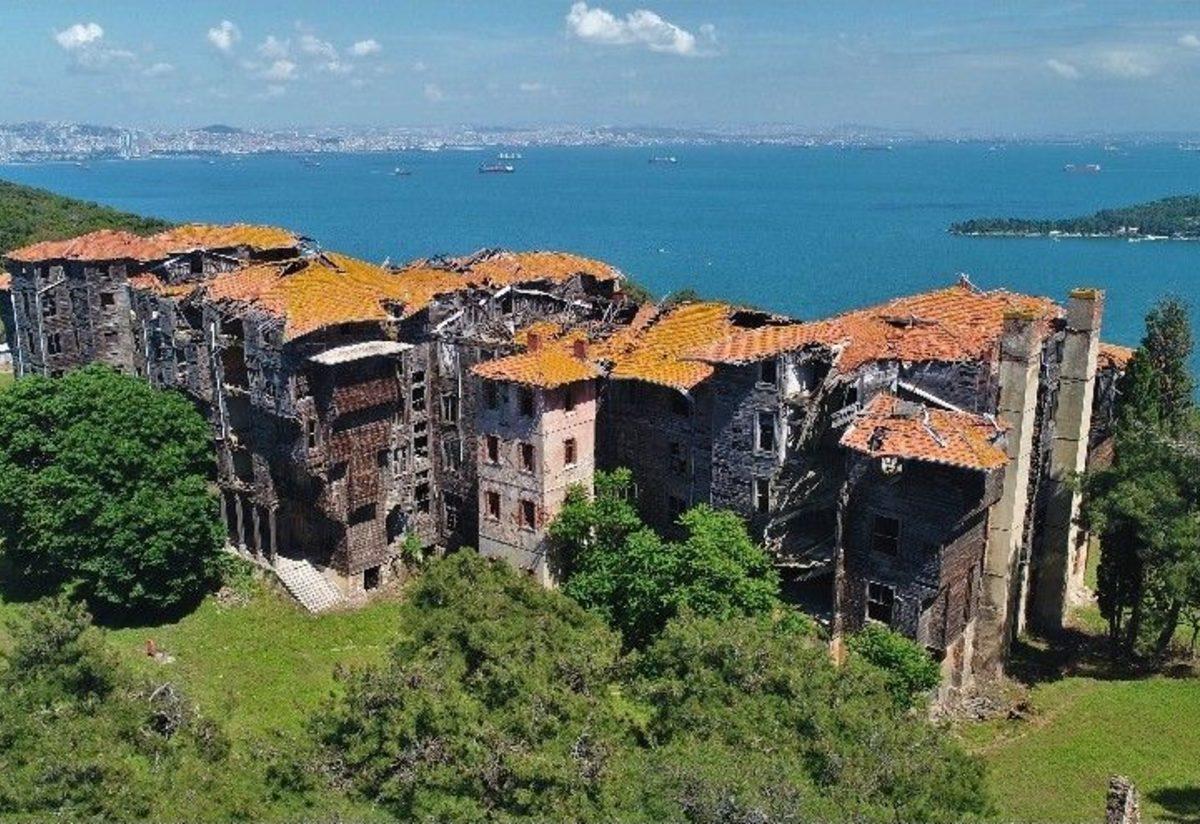 Dünyanın en büyük ikinci ahşap yapısı olan Büyükada’daki Rum Yetimhanesi için restorasyon çalışmaların bu yaz başlaması bekleniyor. Adaların en yüksek noktasına eşsiz manzaraya sahip harabeye dönen binanın son durumu havadan çekilen görüntüler ile gözler önüne serildi.Avrupa’nın en büyük Dünyanın ise İkinci en büyük ahşap yapısı olması özeliğini taşıyan Büyükada’daki Rum Yetimhanesi’nin son durumu havadan görüntülendi. Çekilen görüntülerde yıllarca atıl bir şekilde duran yapının harabeye döndüğü görülüyor. Çatı kısmı büyük zarar gören yapının bazı bölümlerinin tamamen çökerek odaları içlerine kadar gözüküyor. Adaların en yüksek noktasında hemen göze çarpan yapı, bazı sivil toplum kuruluşu tarafından tehlike altındaki 7 dünya mirası arasında gösterildi. Tarihi binanın restorasyon çalışmalarına bu yaz başlaması beklenirken, Maliyetin ise yaklaşık 50 milyon dolar olması düşünülüyor.