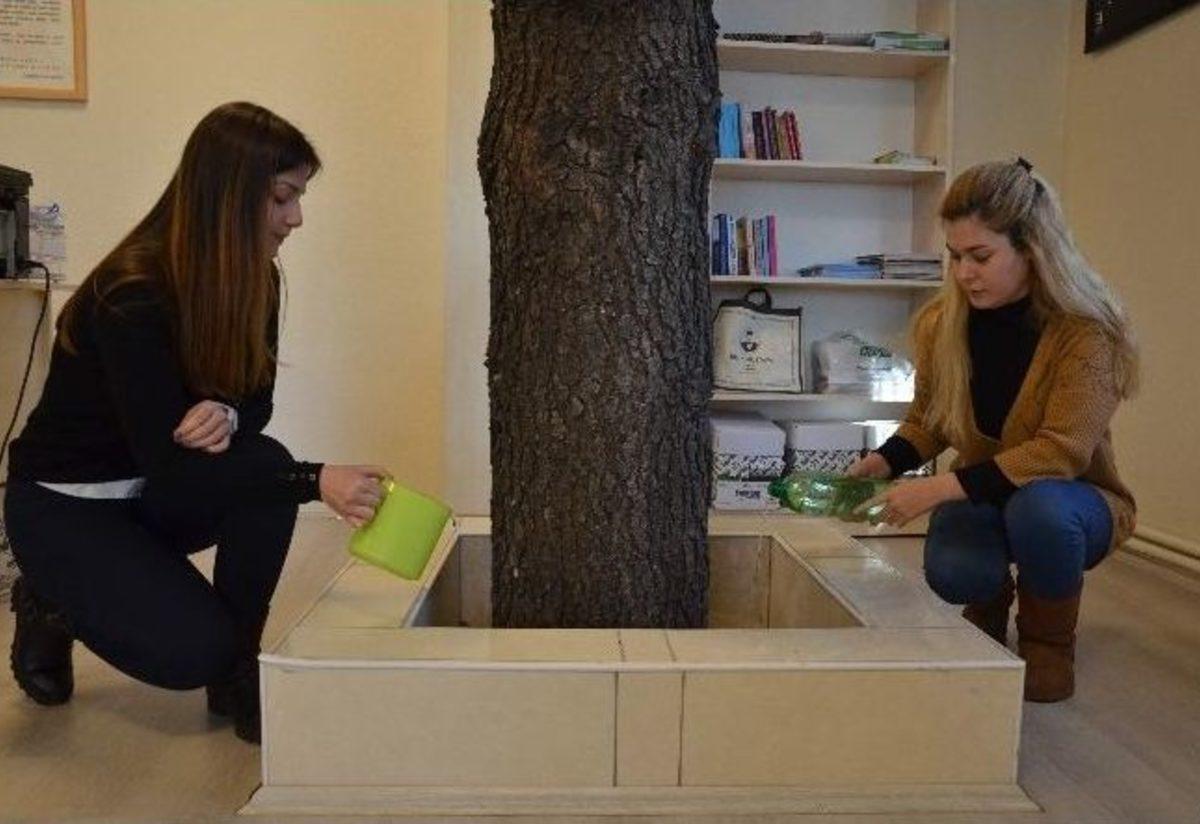 Eskişehir’in Çukurhisar ilçesinde bulunan Tepebaşı Belediyesi Çocuk Sanat ve Kültür Merkezi binasının içine girenler alışkın olmadıkları bir manzarayla karşılaşıyor.Yaklaşık 20 sene önce yapılan binada çevrecilik örneğine imza atılmış. Müteahhitler, arazide bulunan ağaçları kesmemek için tek katlı binayı ağaçların üstüne inşa etmiş. Şuanda Tepebaşı Belediyesi Çocuk Sanat ve Kültür Merkezinin hizmet verdiği binada eğitim-öğretim faaliyeti yapanlar zamanında yapılan bu örnek çalışmayı takdirle karşılıyor.Merkez sorumlusu Sibel Kulak, bunun kendilerinin aşina oldukları bir durum olmadığına dikkat çekti. Kulak, "İlk geldiğimizde ağaçları gördük ve çok şaşırdık. Ağaçlar kesilmeden binanın da yapısı korunarak ağaçlar korunmuş. Şuanda da hala çocuk merkezimizde ağaçlarla birlikte eğitim veriyoruz. Bu durum insanlara, ağaçlar ve yapılar bozulmadan bir şekilde farklı mekanlar yapılabileceğini gösteriyor. Burası çocuk eğitim merkezi olduğu için çocuklar da ağaçlara zarar verilmeden evlerin yapılabileceğini görmüş oluyorlar. Şuanda ülkemizde maalesef ağaçlar kesilerek yapılaşmalar olduğu için bu zamanda böyle bir şeyin olması çocukların temelden görüp yetişmelerine de çok faydalı oluyor" dedi."Ağaçlar kesilmiyor ve doğa korunuyor"Öğretmen Nihal Uygun ise, ağaçlar kesilmeden binaların yapılmasının çok güzel bir durum olduğunu söyledi. Uygun, "Ağaçlara zarar vermeden bina yapılmış. Ağaçlar kesilmiyor ve doğa korunuyor. Ben de öğrencilerime böyle şeyler öğrettiğim için buraya gelerek ağaçlarımızı inceliyoruz. Bazı çocuklarımız da Sibel hanıma ve bana çizdikleri resimleri getiriyorlar. Biz de o resimleri sergilemek amacıyla ağaçlarımızın üstüne asıyoruz" diye konuştu.