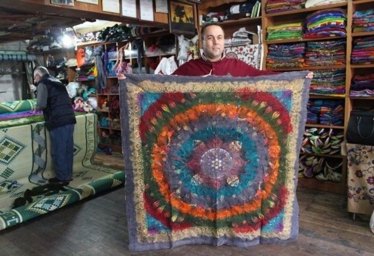 Çobanların keçesini modernize eden İzmir’in Tire ilçesindeki Arif Cön, şaldan terliğe, çantadan tabloya, ceketten paspasa...