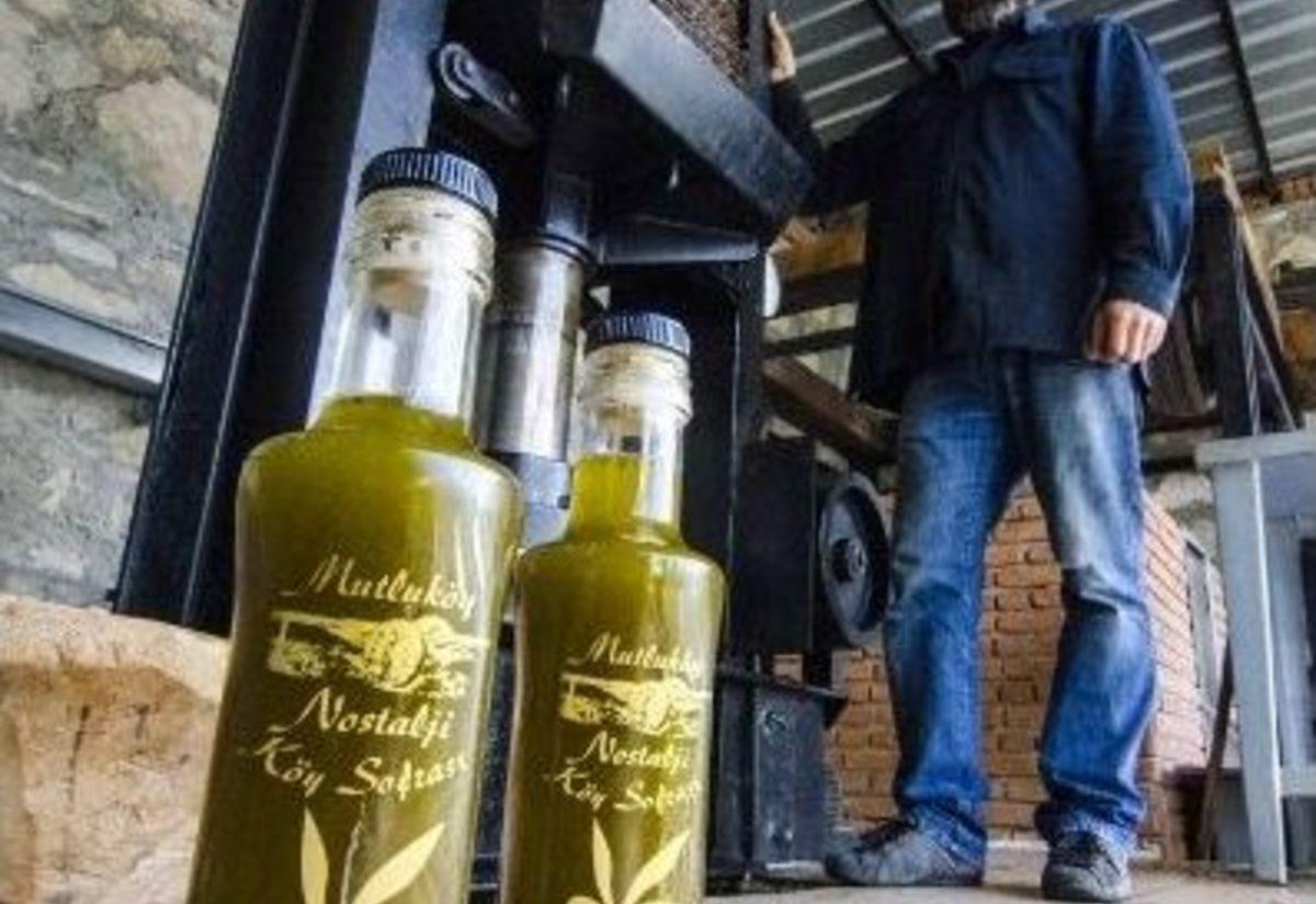 Balıkesir’in Ayvalık ilçesinde evini butik otel olarak işleten vatandaş, bahçeye kurduğu tarihi makinelerle zeytinleri taş baskıda sıkarak tamamen organik zeytinyağı imal ediyor.Ayvalık’ın Mutlu köyünde yaşayan Erdinç Tügen bir yandan köydeki evini butik turizme açarken, bir yandan da taş baskı metoduyla zeytinyağı üretimi yapıyor. Kendi bahçesinde topladığı zeytinleri yaklaşık bin yıllık bir teknikle su ve katkı maddesi kullanmadan, sadece ezerek ve sıkarak yağ çıkaran Tügen, bu yağların adeta bir hayat iksiri olduğunu ifade ediyor. Evinin bahçesindeki atölyede zeytinleri önce 30 dakika boyunca döner taş değirmende çevirerek ezen Tügen, daha sonra hamur bulamacı haline gelen zeytinleri özel sıkım torbalarına alarak pres makinesine yerleştiriyor. Pres makinesinde yağ zeytinden ayrılarak depolama alanlarına ulaşıyor. Bir süre dinlendikten sonra kara suyundan ayrılan zeytinyağı, kokusu ve nefaseti ile dikkat çekiyor. Erdinç Tügen, “Çok önceden kullanılan mengene tabir ettiğimiz taş baskı şeklinde bir atölye yapmak istedim. Uzun araştırmalar neticesinde böyle bir ünite buldum. Daha sonra bunu evimin bahçesine kurdum. Zeytini kendi ağaçlarımızdan topluyoruz. Yıkadıktan sonra taş baskı dediğimiz ünitemizin içine boşaltıyoruz. Bu ünitenin içinde zeytin yarım saat eziliyor. Bu kırılma aşaması bittikten sonra hamur haline geliyor. Hamur haline gelen zeytini çuvallara doldurup presliyoruz. Sıkılan hamurdan pırıl pırıl, tamamen doğal zeytinyağı çıkıyor. Kırk dakika içerisinde zeytinyağını şişeye alabiliyoruz. Bu üretimde suyun hiçbir şeklini kullanmıyoruz. Ne sıcak ne de soğuk su. Isı ile alakası olmayan bir sıkma yapıyoruz“ dedi.Tügen, kurduğu taş baskı sistemi ile günde 500 kilo yağ üretebildiğini söyledi.