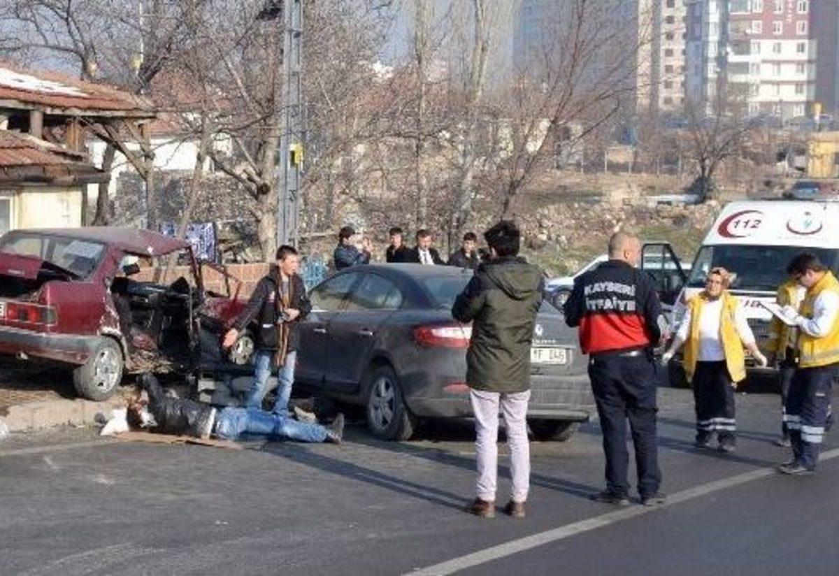Kayseri’de 5 kişinin yaralandığı kazada olay yerine gelen küçük çocuk, elindeki sopayla kazaya karışan sürücüyü...
