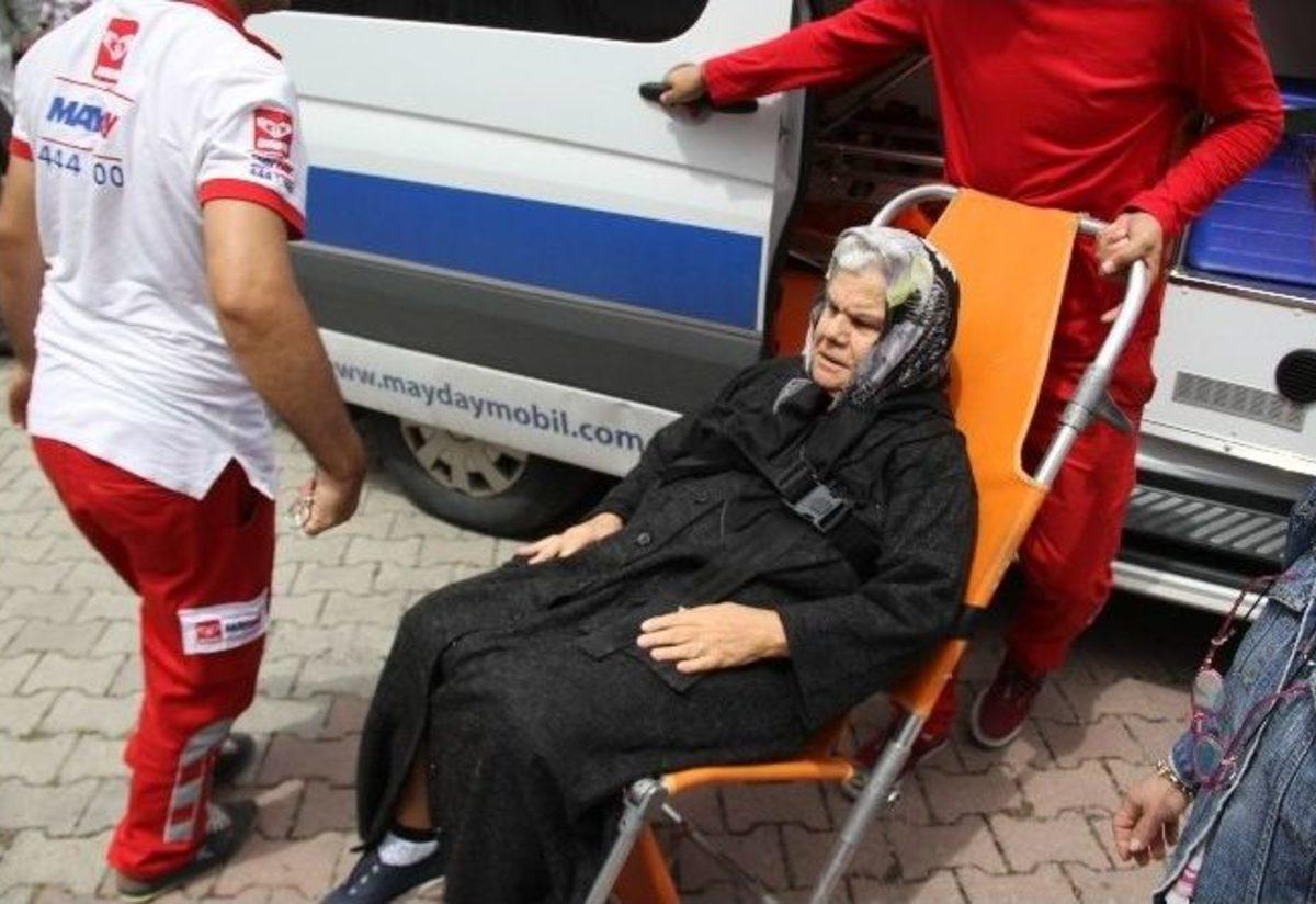 Ambulansla Etiler Mesleki ve Teknik Anadolu Lisesi’ne oy kullanmak için gelen 80 yaşındaki Sabiha Halilat...