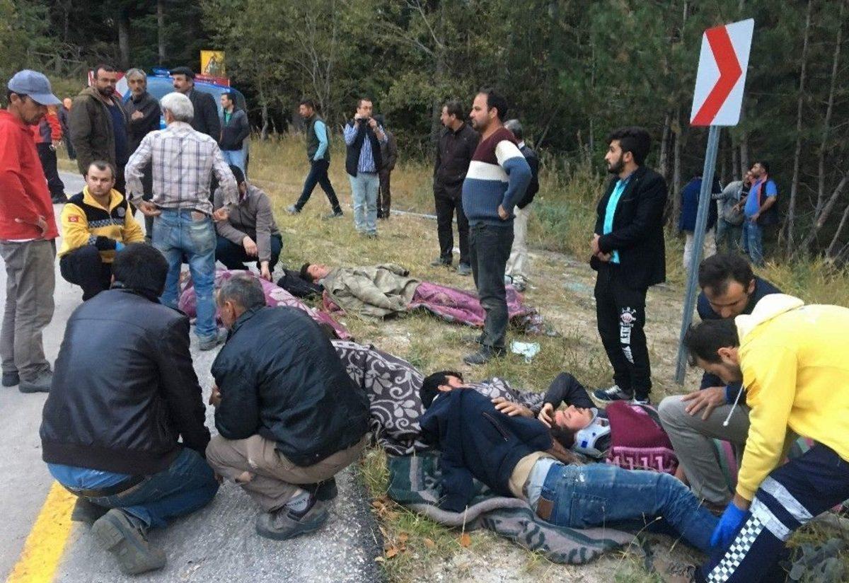 Uludağ’da bir otel inşaatında çalışan işçileri taşıyan minibüs frenlerinin boşalması sonucu şarampole uçtu. 2’si ağır 13 işçinin yaralandığı kazada can pazarı yaşanırken, işçileri mutlak ölümden iki çam ağacı kurtardı. Yerde bir süre yatan yaralı işçiler için olay yerine 6 ambulans sevk edilirken, onların yardımına jandarma ekipleri yetişti.Alınan bilgiye göre, kaza Bursa Uludağ yolunun 25.kilometresinde Kirazlıyayla Mevkisi’nde akşam saatlerinde meydana geldi. Otel inşaatında çalışan işçiler, mesai sonrası Bursa’ya dönüşe geçtiler. Orhan Türk idaresindeki 16 CYV 05 plakalı minibüs virajı dönerken frenlerinin patlaması sonucu şarampole yuvarlandı. Ormana uçan minibüs iki çam ağacına çarparak durabildi. Kazada Ali Başkurt ve oğlu İsmail Başkurt, Orhan Türk, Kadir Aşcı, Hasan Başkurt, Behlül Başkurt, Nuh Başkurt, Ümit Gençgül, Şevki Keskin, Erdal Parlak, Ergün Parlak, Erol Hızıroğlu, Erol Parlak yaralandılar. Ali ve İsmail Başkurt’un hayati tehlikesinin bulunduğu belirtildi.Yaralıların imdadına ise jandarma, itfaiye ve 112 ekipleri yetişti. Olay yerine sevk edilen 6 ambulansla yaralılar Uludağ Üniversitesi Tıp Fakültesi, Çekirge ve Bursa Devlet Hastaneleri’ne kaldırıldı. Yaralı işçiler, ambulanslar gelene kadar olay yerinde battaniyeye sarılarak beklediler. Olayla ilgili soruşturma başlatan jandarma trafik timleri de karayolunda ölçüm yaptı.