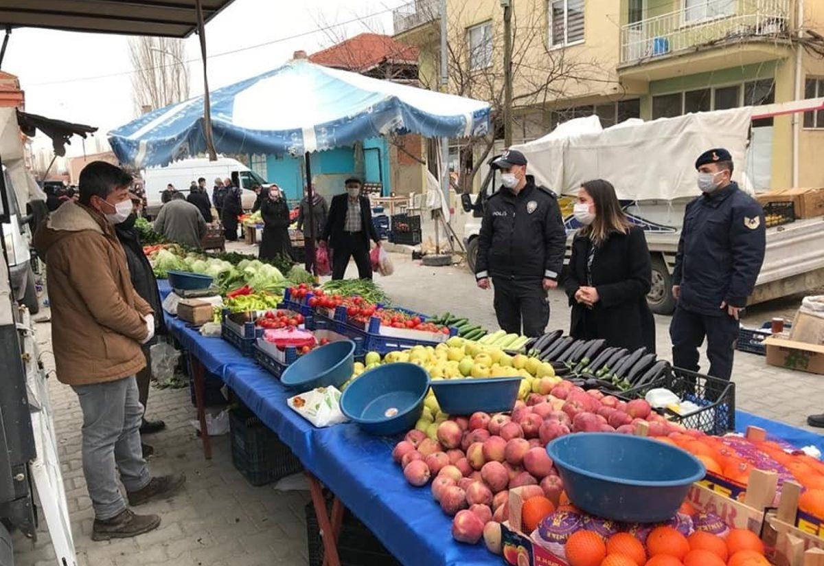 İlçede sosyal hayatta önemli yer tutan halk pazarında sıkı denetim yapıldığını belirten Kaymakam Armağan Yazıcı, ’’Pazar yerimizin ana girişlerini araç girişlerine kapatarak, vatandaşlarımızın sosyal mesafe alanlarının daraltılmasının önüne geçilmeye çalışıldı. Pazara gelen vatandaşlarımıza ve esnafımıza salgın konusunda uymaları gereken; maske, mesafe ve hijyen kuralları hatırlatıldı. Görevlendirilen kolluk kuvvetlerimizle; pazar esnafı ve vatandaşlarımızın kurallara uyup uyulmadığının denetimi, kalabalık oluşturabilecek ve pazar alanı içerisinde bulunan kafe, lokal ve kıraathanelerin sürekli denetimi gerçekleştirildi. Denetimlerimiz aralıksız olarak devam edecek’’ ifadelerini kullandı.