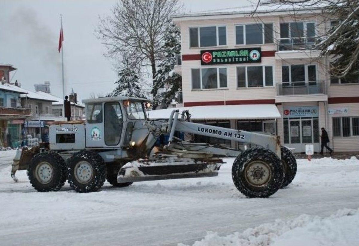 Kütahya’nın Pazarlar ilçesinde akşam saatlerinde başlayan yoğun kar yağışı ilçeyi beyazlara bürüdü.İlçede gün boyu esen lodos ve yağan yağmur sonucu karların büyük bölümü erirken, akşam saatlerinde tekrar başlayan yoğun kar yağışı sonucu kar kalınlığı 25 santimetreye kadar ulaştı.Kar kalınlığı ilçe merkezinde 25 santimetre, yükseklerde ise 35 santimetreyi buldu. Meteoroloji yetkilileri, kar yağışının devam edeceğinin beklendiğini bildirdi.Pazarlar Belediyesi karla mücadele ekiplerince gece boyunca yapılan çalışmalar sonucunda yoğun kar yağışının ulaşımı etkilemediği belirtildi. Yetkililer sürücülerin araçlarında zincir, takoz ve çekme halatı bulundurmaları yönünde uyardı.Pazarlar Belediyesi karla mücadele ekiplerince cadde ve sokaklarda yol açma ve tuzlama çalışmalarını aralıksız sürdürüyor.Bu arada yoğun kar yağışı nedeniyle köy yolları Özel İdareye ait bir kepçe ve greyder ile açık tutulmaya çalışılıyor.(MB-EFE)