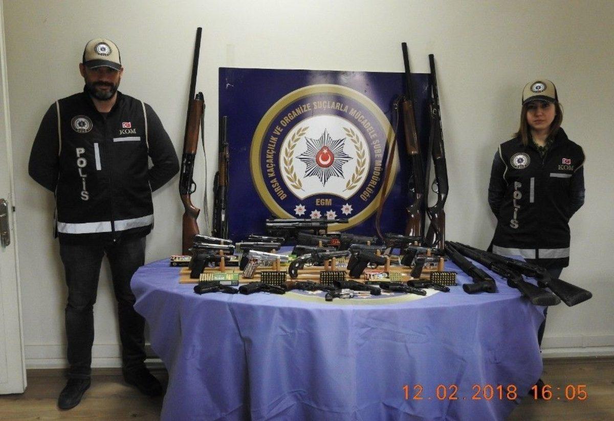 Bursa merkezli 4 ilde 74 adrese eş zamanlı yapılan baskınlarda 61 kişi gözaltına alındı.Bursa Emniyet Müdürlüğü Kom Amirliği ve İnegöl Kom Amirliği, ruhsatsız silah ve mühimmat ticareti yapıldığına dair alınan ihbarlar üzerine harekete geçti. Bursa başta olmak üzere Sakarya, Ankara ve Bilecik illerinde 350 polisle geniş çaplı operasyon yapıldı. 74 adrese aynı anda baskın yapıldı. Bursa’nın Karacabey, İnegöl, Keles, Orhaneli, Harmancık, Yenişehir, Gemlik ve İznik ilçeleri ile Sakarya, Ankara ve Bilecik’te 61 kişi gözaltına alındı.Ev ve iş yerlerinde yapılan aramalarda 38 adet ruhsatsız tabanca, 28 adet tezkeresiz av tüfeği, 48 adet belgesiz kurusıkı tabanca, 7 bin adet farklı çap ve ebatlarda fişek, 1 adet operasyonel çelik yelek, kurusıkıların namlusunu açmak için torna makinası ve silah ticaretinden elde edildiği tahmin edilen 30 bin lira para ele geçirildi. Silahların güneydoğu illerinden getirildiği tespit edildi. Gözaltına alınan şahısların sorgusu sürüyor.