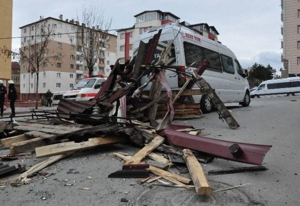 Sivas’ta etkili olan şiddetli rüzgar nedeniyle bir apartmanın çatısından kopan parçalar cadde üzerinde bulunan araçların üzerine uçtu.Sivas’ta sabah saatlerinde başlayan ve öğle saatlerinde etkisini artıran şiddetli rüzgar, Kümbet Mahallesi Fatih Caddesi üzerindeki 6 katlı Esin Apartmanı’nın çatısını uçurdu. Saatte hızı 80 kilometreyi bulan şiddetli rüzgarın etkisiyle çatıdan koparak caddeye savrulan dev parçalar, elektrik tellerini kopararak seyir halinde bulunan Sedat Doğan yönetimindeki 58 S 0092 plakalı okul servisinin üzerine düştü.Kazada yaralanan olmazken, çatıdan kopan parçalar iki otomobilin daha üzerine düşerek araçlarda maddi hasar oluşmasına neden oldu. Olay yerine gelen polis ekipleri güvenlik önlemleri alarak caddeyi çift taraflı olarak trafiğe kapattı. Ardından Sivas Belediyesi’ne ait itfaiye ekipleri yolda temizlik çalışması başlattı. Okul servisinin şoförü Sedat Doğan, "Ben hareket halindeyken çatı birden üzerime düştü. Öncesinde teller üzerime düştüğü için orada hareket edemedim, durdum. Araçta sadece ben vardım son öğrencimi 50 metre önce indirmiştim" dedi.