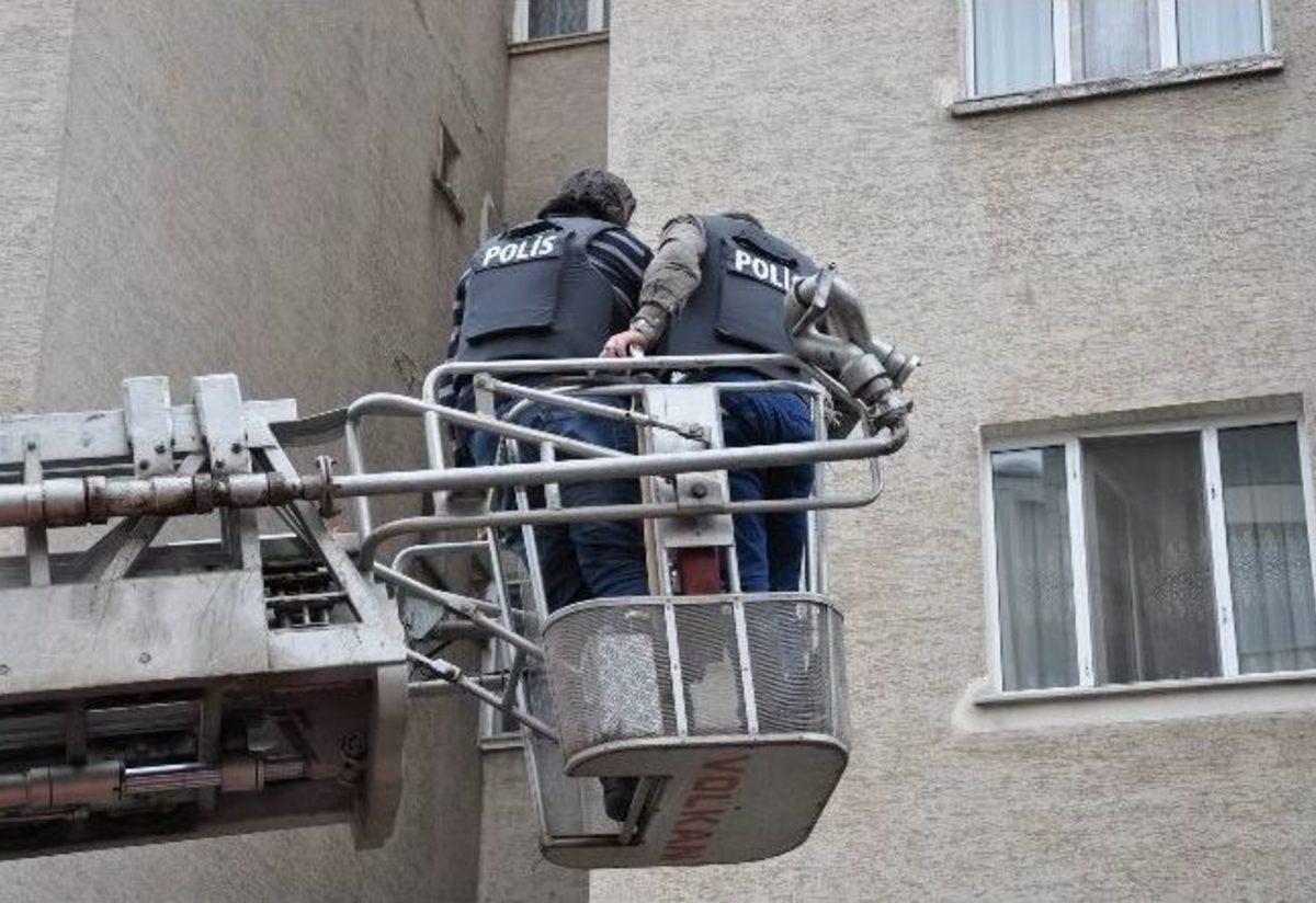 Sivas’ta bir şizofren hastası, ailesiyle birlikte yaşadığı evde eline iki adet bıçak alarak çıktığı balkonda polise zor anlar yaşattı.Olay, Yenişehir Mahallesi 2’inci Sokak’ta bulunan Hülya apartmanının ikinci katında meydana geldi. Annesi, ağabeyi ve kız kardeşi ile birlikte yaşayan şizofren hastası Soner K. (40), eline iki adet ekmek bıçağı alarak ailesiyle birlikte kendini eve kitledi. Polise haber verilmesinin ardından olay yerine gelen ekipler, şahsı kapıyı açmaya ikna edemeyince itfaiye ekiplerinden yardım istendi. Sivas Belediyesi’ne ait itfaiye ekiplerinin olay yerine gelmesinin ardından polis ekipleri şahsa müdahale etmek için ellerine kalkan ve biber gazı alarak itfaiye aracının merdivenine çıkarak ikinci katta bulunan evin penceresinden içeri girdi.BALKONA ÇIKTI, DUA ETTİBulunduğu odadan eline bıçak ve kitap alarak evin balkonuna çıkan Soner K.’yı polis ekipleri bir süre ikna etmeye çalıştı. İkna olmayan şahıs elinde bulunan bıçakları balkona bırakıp yağan yağmura bakarak dua etti. Bu sırada şahsın dalgınlığından faydalanan polis ekipleri balkona girerek ilk olarak bıçakları balkondan aşağı attı ve şahsı yakalayarak sakinleştirmeye çalıştı. Soner K., elinde bulunan kitapların balkondan aşağı düşürülmesini sinirlenerek polis ekiplerine saldırmaya çalıştı. Polis ekipleri yaklaşık 2 saatlik ikna çabasının ardından şahsı etkisiz hale getirdi.112 ekipleri tarafından sakinleştirici iğne vurulan Soner K., daha sonra ambulansla Numune Hastanesi’ne kaldırıldı.