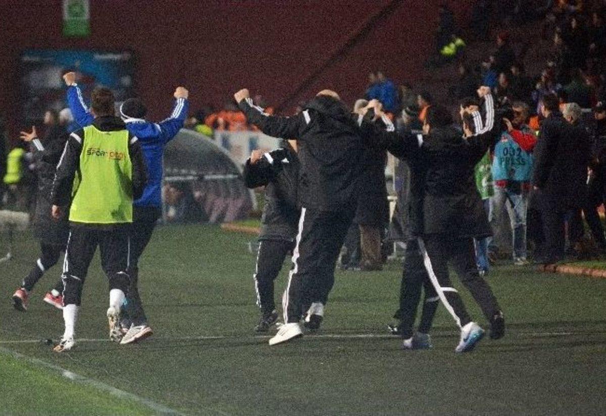 Spor Toto Süper Lig’in 22. haftasında sahasında Kardemir Karabükspor’u konuk eden Trabzonspor, ilk yarıyı 2-1 yenik kapadı.MAÇTAN DAKİKALAR (İLK YARI)12. dakikada Musa Çağıran’ın derinlemesine pasında kaleci ile karşı karşıya kalan Akpala’a son anda topu dokundu. Kalesini zamanında terk eden Hakan Arıkan gole izin vermedi.39. dakikada savunmada Samba Sow’un kafa ile uzaklaştırmak istediği topu ceza sahası dışında önüne alan Mehmet Ekici, düzgün bir vuruşla meşin yuvarlağı kaleci Waterman’ın solundan ağalarla buluşturdu. 1-043. dakikada sol çaprazdan topla birlikte ceza sahası içine giren Ahmet İlhan’ın vuruşunda top üst direğe çarparak oyun alanına döndü. Onur’un geri çevirdiği topu alan Traore, meşin yuvarlağı ağlara gönderdi. 1-145. dakikada sol taraftan gelişen ani Karabükspor atağında topla birlikte ceza sahasına giren Ahmet İlhan’ın sert şutunda kaleci Hakan’dan seken topu Onur boş kaleye gönderdi. 1-2STAT: Avni AkerHAKEMLER: Hüseyin Göçek xxx, Mustafa Emre Eyisoy xxx, Kemal Yılmaz xxxTRABZONSPOR: Hakan xx, Fatih x, Aykut Demir x, Bosingwa xx, İshak x, Aytaç Kara x, Özer Hurmacı x, Mehmet Ekici xx, Erkan Zengin x, Sefa Yılmaz x, Oscar Cardozo xYEDEKLER: İbrahim Demir, Zeki Yavru, Uğur Demirok, Mustafa Akbaş, Soner Aydoğdu, Salih Dursun, Deniz YılmazTEKNİK DİREKTÖR: Ersun YanalKARDEMİR KARABÜKSPOR: Waterman xx, Bertul Kocabaş xx, Murat Akça xx, Larrys Mabiala xx, Emre Özkan x, Samba Sow x, Musa Çağıran xx, Onur Ayık xxx, Ahmet İlhan xxx, Traore xxx, Akpala xxYEDEKLER: Abdülaziz Demircan, Furkan Özçal, Yiğit İncedemir, Erkan Kaş, Onur Cenik, Viola, KumbelaGOLLER: Mehmet Ekici (dk. 39) (Trabzonspor), Traore (dk. 43), Onur (dk. 45) (Kardemir Karabükspor)SARI KARTLAR: Aykut Demir (Trabzonspor), Traore (Kardemir Karabükspor)