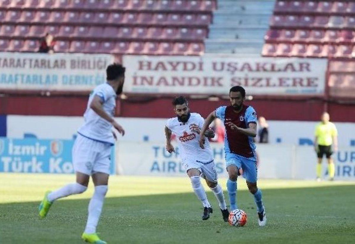 Spor Toto Süper Lig’in 32. haftasında Trabzonspor, Çaykur Rizespor’u konuk ediyor. Müsabakanın ilk yarısı ev sahibi ekibin 4-0 üstünlüğüyle sona erdi.MAÇTAN DAKİKALAR (İLK YARI)11. dakikada Muhammet Demir’in pasında ceza sahası yayı üzerinde topla buluşan Yusuf Yazıcı’nın şutunda meşin yuvarlak kalecinin Itanje’nin solunda ağalarla buluştu. 1-015. dakikada Mehmet Ekici’nin uzak mesafeden vuruşunda meşin yuvarlak kaleci Itandje’nin üstünden ağlarla buluştu. 2-028. dakikada Yusuf’un ceza sahası içinde arka direğe doğru ortasında Savaş Çakır’ın kafa vuruşu kaleci Itanje’de kaldı.38. dakikada Yusuf Yazıcı’nın pasında ceza sahası içindeki Savaş Çakır’ın vuruşunda direkten dönen topu Muhammet Demir filelere gönderdi. 3-041. dakikada Yusuf Yazıcı’nın sağ kanattan ceza sahasına ortasında Muhammet Demir’in kafa vuruşunda top ağlarla buluştu. 4-0STAT: Avni AkerHAKEMLER: Alper Ulusoy xxx, Alexs Taşcıoğlu xxx, Arkın Akgöl xxxTRABZONSPOR: Onur xx, Semih Karadeniz xxx, Bosingwa xx, Douglas xx, Musa Nizam xx (Güray Vural dk. 28 x), Okay Yokuşlu xxx, Mehmet Ekici xxx, Yusuf Yazıcı xxx, Savaş Çakır xxx, Yusuf Erdoğan xxx, Muhammet Çakır xxxYEDEKLER: Esteban, Cardozo, Muhammet Beşir, Salih Dursun, Aytaç Kara, Melih KabasakalTEKNİK DİREKTÖR: Hami MandıralıÇAYKUR RİZESPOR: Itandje x, Murat Duruer x, Viera x (Deniz Kadah dk. 23 x), Ümit Kurt x, Orhan Ovacıklı x, Makiadi, Koray Altınay x, Sylvestre x, Sercan Kaya x, Ahmet İlhan Özbek x, Mehmet Akyüz xYEDEKLER: Gökhan, Chevalier, Tuzsnyski, İsmail, Oboabona, Ertuğrul ErsoyTEKNİK DİREKTÖR: Hikmet KaramanGOLLER: Yusuf Yazıcı (dk. 11), Mehmet Ekici (dk. 15), Muhammet Demir (dk. 38 ve 41) (Trabzonspor)