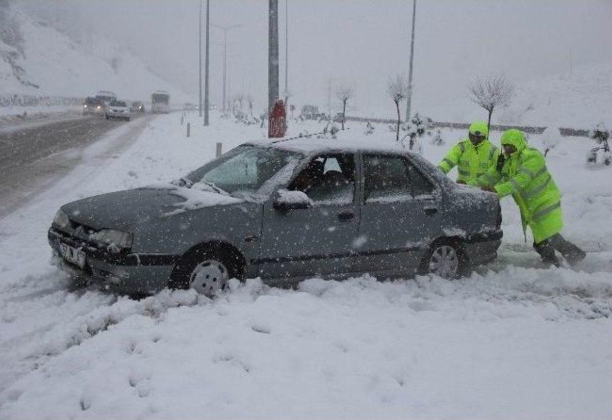 Samsun’da kar yağışı dolayısıyla araç sürücüleri zor anlar yaşadılar.Samsun’da sabah saat 06.30’da başlayan kar yağışı Samsun-Ankara karayolu üzerinde etkisini gösterdi. Kar yağışı dolayısıyla çok sayıda araç yolda kaldı. Samsun Emniyet Müdürlüğü Bölge Trafik Şube Müdürlüğü ekipleri, zincir takmayan araçların yola çıkmasına izin vermedi. Trafik ekipleri, yolda kalan araç sürücülerinin yardımına koştu. Samsun Büyükşehir Belediyesi ile Karayolları ekipleri de yolda kar küreme ve tuzlama çalışması yaptılar. Yolda kalan sürücüler araçlarına zincir takıp yollarına devam ettiler.