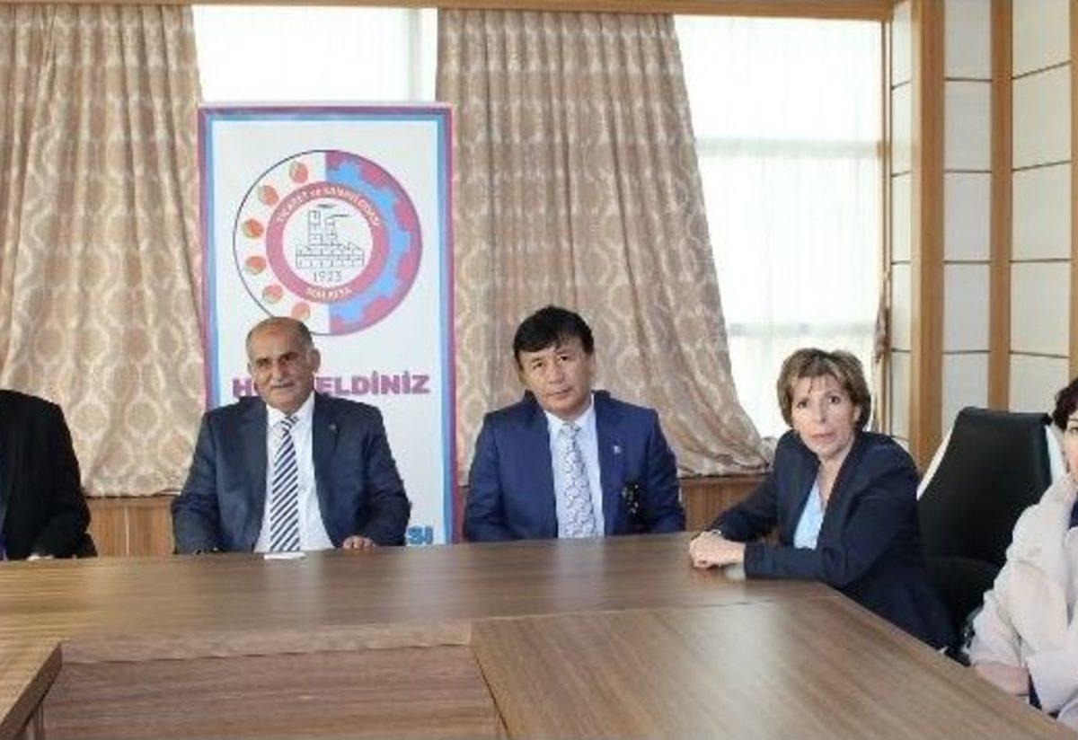 9. Doğu Güneydoğu Anadolu Tarım Teknolojileri, Makine, Hayvancılık ve Gıda Fuarı’na katılmak üzere Malatya’ya gelen yabancı ülkelerin büyükelçileri ve beraberindeki heyetler, Malatya Ticaret ve Sanayi Odası’nı ziyaret etti. Ziyarette, ikili ilişkilerin yanı sıra Malatya ve ticaret konuşuldu.Ziyaretten duyduğu memnuniyeti dile getiren Malatya Ticaret ve Sanayi Odası Başkanı Hasan Hüseyin Erkoç, büyükelçilere Malatya ekonomik yapısı ve gelecek vizyonu hakkında bilgiler aktardı.Malatya’nın gelişen sanayi altyapısı, üretim kabiliyeti ve ihracat odaklı bakış açısıyla Türk sanayisinde öne çıkan şehirlerden biri olduğunu ifade eden Başkan Erkoç, “Malatya son yıllarda sanayi ve ticaret altyapısını geliştiren ve Türkiye’nin jeopolitik Dünya üzerindeki konumu nasıl değerliyse, Malatya’da, Türkiye için doğunun batısı ve batının doğusu konumunda olan bir ilimiz” dedi.2014 yılında Malatya’nın ihracatının 410 milyon dolar olduğunu vurgulayan Erkoç, “İl dışında olan şirketlerimizle birlikte 1 milyar dolar. İhracat dağılımına baktığımızda özellikle gıda ağırlıklı 200 milyon dolar, geriye kalan ise su ürünleri, tekstil ve diğer sektörlerde yapılmaktadır. Özellikle Malatya tekstil ve konfeksiyonda çok önemli bir konumda. Dünya’daki önemli markalara burada üretim yapmaktayız. Malatya’yı geleceğe taşıyacak sektörlere baktığımızda demir-çelik noktasında çok zengin demir yataklarına sahibiz. Malatya sağlık sektöründe istikbal vadeden bir şehir. Turgut Özal Tıp Merkezi’nin Malatya’da oluşu artık Dünya’da hasta kabul eden bir şehir konumuna getirdi. Karaciğer organ naklinde Avrupa ilk sırada ve Dünya’da ikinci sırada yer almaktayız. Malatya, Dünya’da hasta kabul eden bir kent konumunda. Kayısı, Malatya ekonomisi için çok önemli yer teşkil etmektedir. Dünya kuru kayısı ihtiyacının yüzde 80’ini karşılayan bir şehrimiz. Yaklaşık Dünya’da 113 ülkeye kayısı ihracatı yapıyoruz. Yıllara baktığımızda ortalama 350-400 milyon dolar arasında kayısı ihracatımız söz konusu. Biz Türkiye’nin ve Malatya’nın geleceğini parlak görüyoruz. Sanayiciler olarak, her zaman Malatya ve ülkemizin büyümesi için çalışıyoruz. Hedefimiz tüm ülkelere ihracat gerçekleştirmektir” diye konuştu.Kosova Büyükelçisi Avni Suphi ise, “Malatya sadece kayısı ile değil sanayisiyle de gelişmiş bir şehir. Kosova’da şuan 300 tane Türk şirketi yatırım yapıyor. Küçük bir pazar değiliz büyük bir pazarın içindeyiz. Kosova yatırım için cazip bir pazar olabilir” dedi.Kırgızistan Büyükelçisi İbragim Dzhunsov’da, “Kırgızistan uzağı yakınlaştıran dostlarını çoğaltan bir ülkedir. Kırgızistan’da 400’den fazla Türk şirketleri altyapı ve inşaat sektörü üzerine yatırım yapıyor” diyerek, Türk işadamlarının başarılarından söz etti.Malatya Ticaret ve Sanayi Odası (MTSO) Başkanı Hasan Hüseyin Erkoç, ziyaret sırasında konuklara kayısı hediye ederken, misafirler de Başkan Erkoç’a ülkelerine özgü hediyeler verdiler.MTSO ziyaretine, Malezya Büyükelçisi Dato Amaran, Kırgızistan Büyükelçisi İbragim Dzhunsov, Kosova Büyükelçisi Avni Suphi, Müsteşar Günel Ureya, Arnavutluk Müsteşarı Samir Kurti, Makedonya Maslahatgüzarı Shpresa Juusufi, Fas Ekonomi Müsteşarı Tavfik Maazouzi ve Brezilya Ticaret Müsteşar Asistanı Nurhas Çelik katıldı.