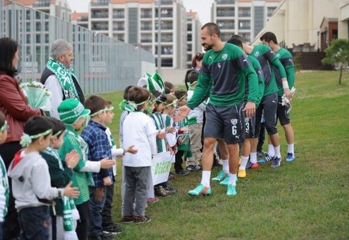 Bursaspor, Özlüce Tesisleri’nde Eskişehirspor maçının hazırlıklarını tamamlayarak karayolu ile Eskişehir’e hareket etti.Spor Toto Süper Lig’in 23. haftasında Eskişehirspor’un konuğu olacak olan Bursaspor Özlüce Tesisleri’nde yaptığı son antrenmanın ardından Eskişehir’e hareket etti. Antrenman öncesinde yeşil-beyazlı ekibe sürpriz konuklar geldi. Beşevler Vardar Anaokulu öğrencileri, öğretmenleri ile birlikte tesislere gelerek futbolcular ve teknik heyeti ziyaret etti.“Bursa’nın Değeri Bursaspor” adlı ödev konusu üzerine Özlüce Tesisleri’ni ziyaret eden öğrenciler, futbolcular ile bir araya gelip hatıra fotoğrafı çektirdiler. Okul yetkilileri teknik direktör Şenol Güneş’e çiçek ve plaket takdim ederek, bundan sonraki maçlarda başarı dileklerini ilettiler. Basına ve taraftara kapalı olarak gerçekleştirilen antrenmanda yeşil-beyazlı ekip Eskişehirspor maçının taktik provasını gerçekleştirdi.Bursaspor yarın saat 19.00’da deplasmanda Eskişehirspor ile karşı karşıya gelecek.