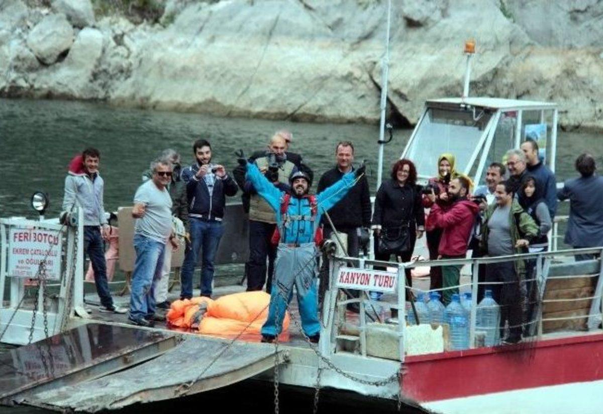 Türkiye’nin ilk ve tek profesyonel base jumping sporcusu Cengiz Koçak, 324 metre yükseklikten atlayarak Türkiye’nin...