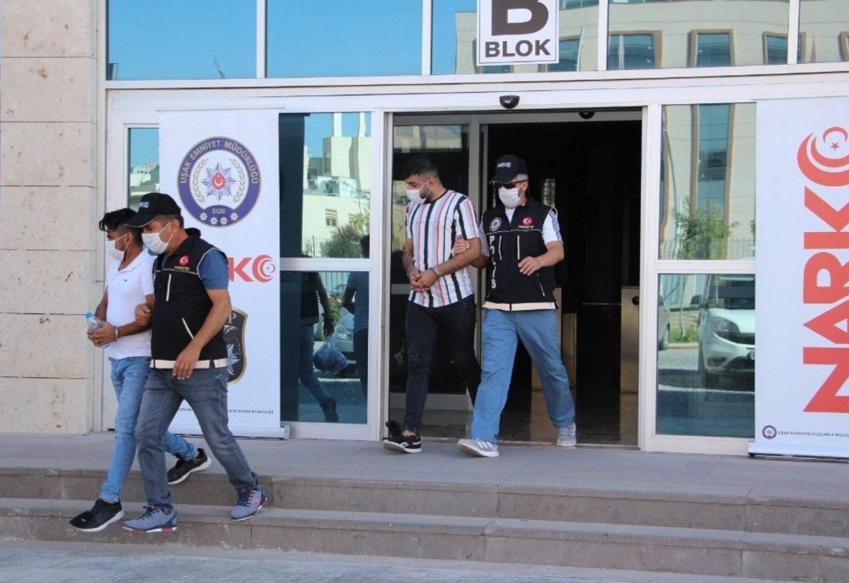 Uşak İl Emniyet Müdürlüğüne bağlı Narkotik Suçlarla Mücadele Şube Müdürlüğü görevlileri, yapılan çalışmalar neticesinde Uşak üzerinden İzmir’e iki araç ile yüklü miktarda uyuşturucu madde sevkıyatı yapılacağı istihbaratına ulaştı. Tespit edilen iki araç, Şeker Fabrikası karşısında bulunan uygulama noktasında ekipler tarafından kontrol edilmek amaçlı durduruldu. Narkotik dedektör köpeği Lito ile yapılan arama esnasında köpeğin araçlardan birinin bagaj kısmına tepki vermesi üzerine aracın bagajında yapılan kontrollerde, 2 çuval içerisinde streç filme sarılı halde paketlenmiş 13 parça toplam 40 kilo 550 gram uyuşturucu esrar maddesi maddesi ele geçirildi. Araçlarda bulunan D.G., Ş.G., S.A. ve F.Y. isimli dört erkek şahıs ise ekiplerce kıskıvrak yakalanarak gözaltına alındı. Yakalanan şahıslar, önce ifadeleri alınmak üzere emniyete sonrasında da adliyeye sevk edildi.