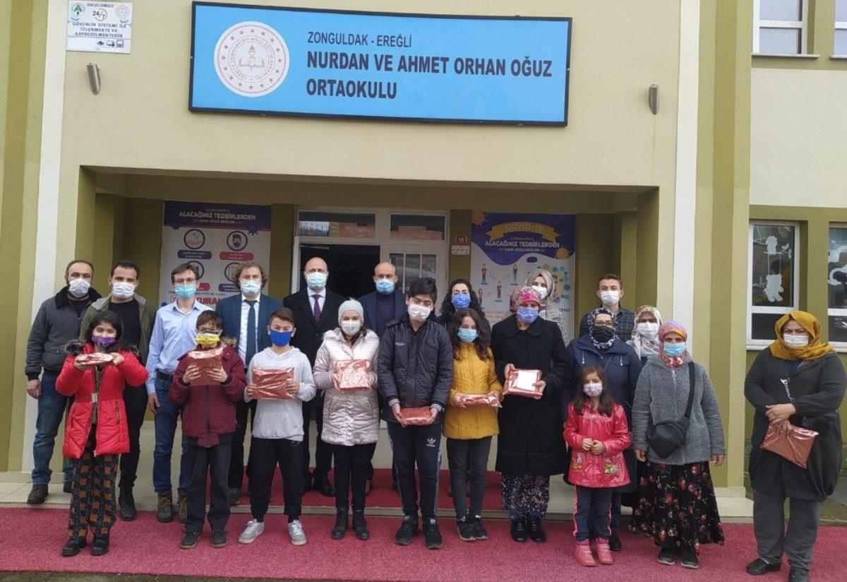 Yapılan tablet dağıtımı etkinliğine Ereğli Eğitim Fakültesi Dekanı Prof. Dr. Soner Yavuz, Matematik Eğitimi Anabilim Dalı Başkanı Doç. Dr. Timur Koparan, projede görev alan öğrenciler, okul müdürleri, veliler ve öğrenciler katıldı. Etkinlikte konuşan Prof. Dr. Soner Yavuz, “Fakültemiz öğrencileri uzaktan eğitime katılamayan kardeşlerini unutmamış onlar için ellerinden geleni yapmışlar ve yapmaya devam edeceklerdir. Ahmet Nurdan Oğuz Ortaokulu ve Merih Şuğle Ortaokulu’nda tablet ihtiyacı olan 21 öğrenciye tablet dağıttık. Öğrencilerimiz bu tabletlerle EBA’ya giriş yapabilecek ve öğretmenlerinin uzaktan eğitim derslerini takip edebileceklerdir. Hayırlı, uğurlu olmasını diliyorum, projenin gerçekleşmesinde emeği olan herkese teşekkür ediyorum” dedi.