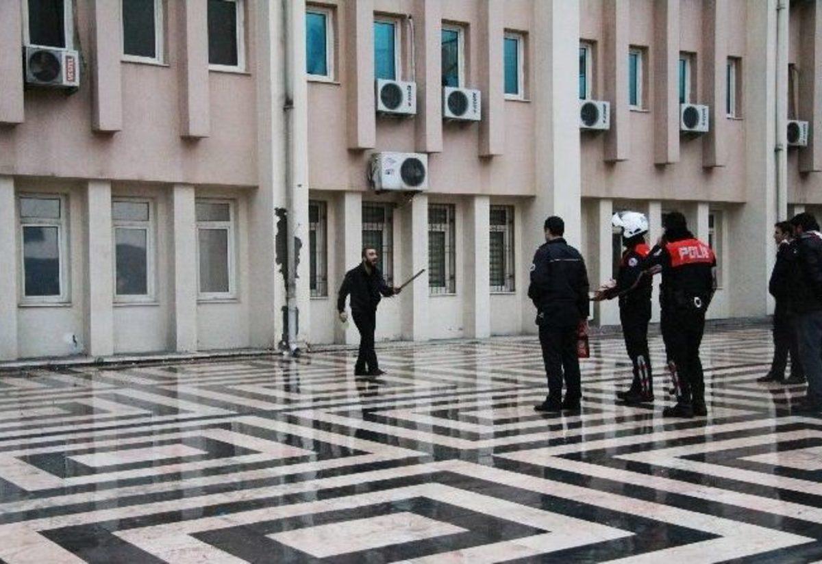 Gaziantep Valiliği önünde, eline benzin şişesi ve döner bıçağı alarak kendini yakmak isteyen genç, uzun...