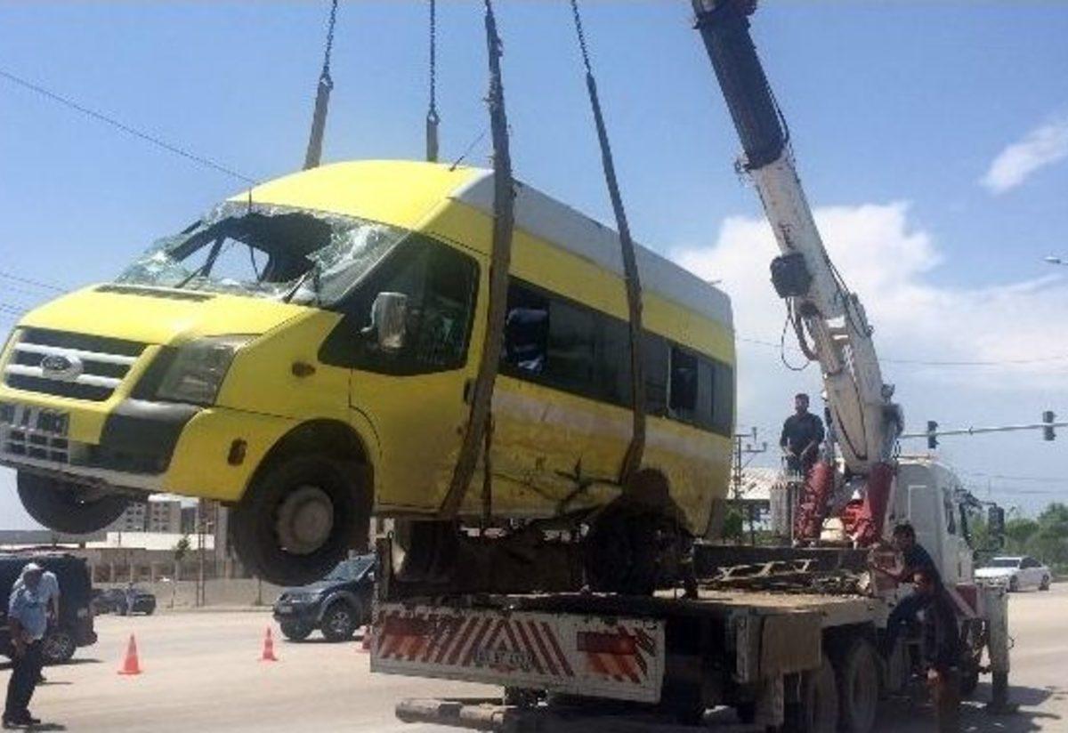 Van merkez Tuşba ilçesindey şehir içi minibüsle otomobilin çarpışması sonucu 2’si çocuk 18 kişi yaralandı.Edinilen bilgiye göre, kaza, öğle saatlerinde Van-Erciş karayolu üzerinde bulunan Tuşba Emniyet Müdürlüğü önünde bulunan trafik ışıklarında meydana geldi. O.Ç. yönetimindeki 65 M 0082 plakalı şehir içi minibüs ile E.Y. yönetimindeki 65 KD 629 plakalı otomobilin çarpışması sonucu kaza meydana geldi. Araçların çarpışması ile birlikte şehir içi minibüs, görgü tanıklarının iddiasına göre 2 takla attıktan sonra yan durduktan sonra olay can pazarına döndü. Kazada yaralan 18 kişi bölgeye sevk edilen ambulanslarla Yüzüncü Yıl Üniversitesi Dursun Odabaş Tıp Merkezi ile Van Bölge Eğitim ve Araştırma Hastanesi’ne kaldırılarak tedavi altına alındı. Kaza sonrası polis ekipleri, olası başka bir kazaya sebebiyet vermemesi için araçlar kaldırılana kadar cadde araç trafiğine kapatıldı. Yaklaşık 1 saatlik çalışma sonucu araçlar bulundukları yerden kaldırılırken, yola dökülen motorin ve yağları ilk önce bir polis memuru kağıtla kenara çektikten sonra, Van Emniyet Müdürlüğü’nün Toplumsal Olayla Müdahale Aracı (TOMA) tazyikli su sıkarak temizledikten sonra cadde trafiğe açıldı. Kazada C.A (6) isimli kız çocuğun sol birinci ayak parmağı koparken, 2 hafif yaralı da hastaneye gitmeyi ret etti. Yaralıların durumlarının iyi olduğu, kazayla ilgili soruşturma başlatıldığı belirtildi.