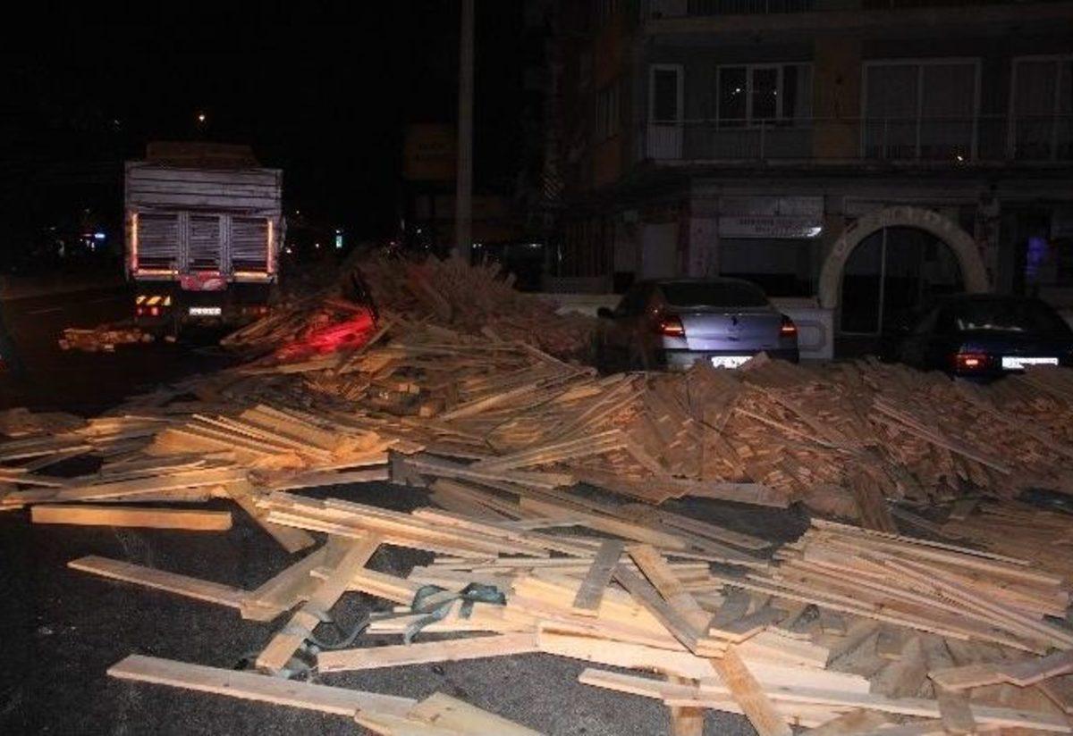 Aydın’ın Nazilli İlçesinde aşırı tonajlı kamyon, kavşakta hızını alamayınca 20 ton keresteyi yola savurdu....