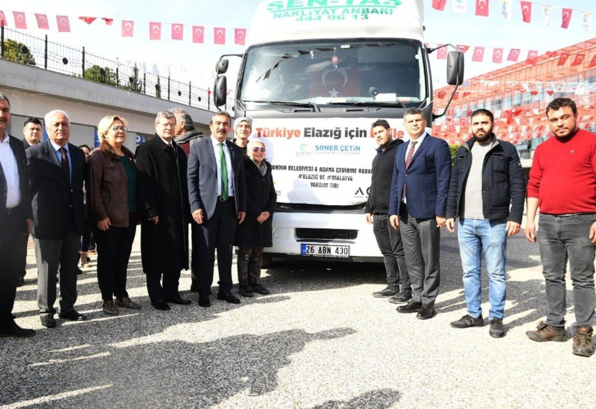 Elazığ’ın Sivrice ilçesinde meydana gelen 6,8 büyüklüğündeki depremin ardından Çukurova Belediyesi’nin açtığı kampanyada toplanan giysi, kuru gıda, temizlik malzemelerini taşıyan tır Başkan Soner Çetin tarafından uğurlandı.