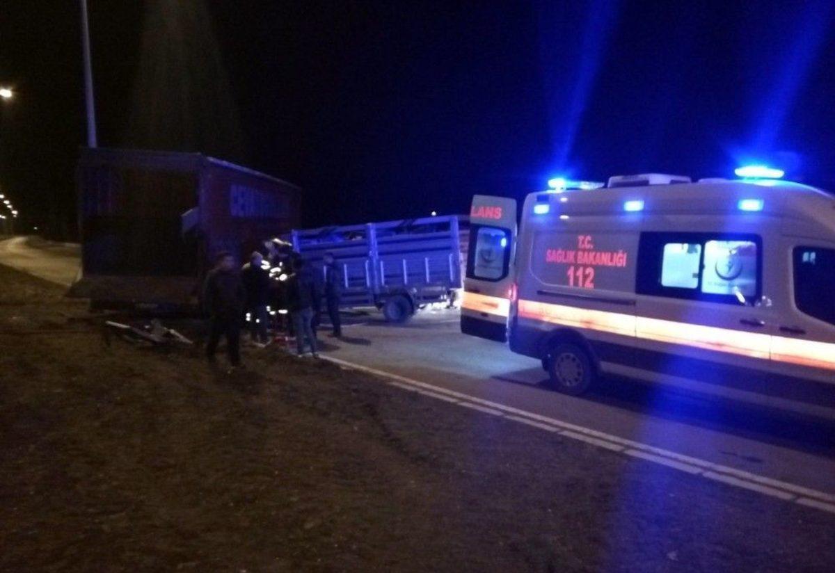 Yol Ortasına Park Eden Hayvan Yüklü Tıra Kamyonet Çarptı