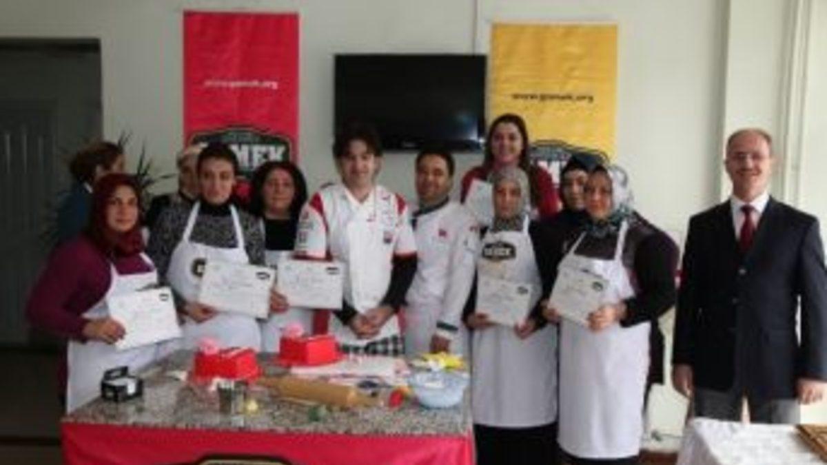 Bünyesinde açtığı kurslarla vatandaşlara çeşitli iş alanları ve meslek dalları oluşturan Gaziantep Büyükşehir Belediyesi Sanat ve Meslek Eğitimi Kursları (GAMEK) bir ilke daha imza attı. GAMEK, şimdi de bölgenin ilk ve tek şeker hamuru kursunu açtı.Kursu tanıtımı ve kursiyerlerin çalışmalarını kamuoyu ile paylaşan GAMEK, Cumhuriyet Gençlik Merkezi’nde bir program düzenledi. Pasta öğreticisi Erdal Erener’in yapımı ile başlayan programda kursiyerler de ilk kez şekerli hamur pastası yapmayı öğrendi.Maldi Gıda’nın katkıları gerçekleşen kursun bir hafta süreceğini ve ileriki dönemlerde devam edeceğini belirten GAMEK Koordinatörü Ramazan Dündar, “Sponsorlarımızın da desteği ile bölgemizde ilk defa şeker hamuru kurslarımızı başlatmış bulunuyoruz. 9-13 aralık tarihleri arasında 40 tane kursiyerle bu kursu başlatmış olduk. 1 hafta süren bir kurs. Bölgede böyle bir ihtiyaç hasıl oldu. Yaptığımız araştırmalarla ve sponsorlarımızın desteği ile bu kursu açmış bulunuyoruz. Gördüğünüz gibi hocamızın değerli katkılarıyla kursiyerlerimize bugün itibari ile sertifikalarını da vereceğiz. İlerleyen süreçte pastanelerde, özel sektörde, kendi iş yerlerinde gereken özveriyi göstererek yeni bir saha daha zenginleştirmiş oluyoruz” diye konuştu.İlk olması, mutfağın ve sahanın dar olması hasebiyle gelen taleplerin bir kısmını geri çevirdiklerini vurgulayan Dündar, “Şuan 40 kişi ile devam ediyoruz. Genelde bayan kursiyerlerimiz ilgi gösteriyorlar. Baylardan çok bir katılım olmadı. Hanımefendiler evlerinde herhalde sektöre katkı sağlamak istiyorlar. Bazı kursiyerlerimiz internet üzerinden satış yapabilecekler sanıyorum. Bu kurslarımızın elbette ikinci ayağı da olacak. Biraz daha profesyonelleşmiş, biraz daha zenginleşmiş biçimde. Kursiyerlerimizin içerisinde alt yapısı olup da katılanlar var; ilk defa katılanlar var. Dolayısıyla ikinci kursu biraz daha kategorize ederek başlatacağız” şeklinde konuştu.Kursiyerlerden Şefika Kankaya ise boş zamanlarını değerlendirmek için kursa katıldığını ifade ederek, “Pasta yapmayı ve çok seviyorum. Güzel ve yeni bir uğraş. Erdal hocam da sağ olsun bize çok güzel bilgiler verdi. Bizim için güzel bir eğitim oldu. Bundan sonraki amacım çevremdeki insanlara bu öğrendiğim pastalardan yapmak” açıklamasını yaptı.Derya Erturhan isimli kursiyer de daha önce evde internet üzerinden siparişle pasta yaptığını belirterek, “Ben evde sipariş üzerine pasta yapmaktayım. Ama şeker hamuru üzerine biraz daha kendimi geliştirmek istedim. İnternetten öğrendiğim kadarıyla yapıyordum. Ancak Erdal hocamın sayesinde inceliklerini de öğrendim. İnşallah daha çok işe yarayacaktır” ifadesini kullandı.Programda daha sonra katkılarından dolayı pasta öğreticisi Erdal Erener’e GAMEK Koordinatörü Ramazan Dündar tarafından teşekkür plaketi verildi.