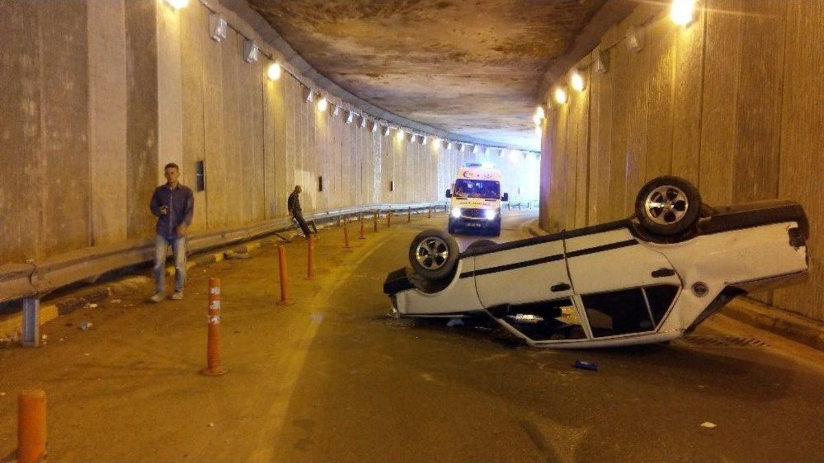 Gaziantep’te takla atan otomobildeki sürücü ve yanındaki kişi kazadan burnu bile kanamadan kurtuldu.Kaza, Gaziantep Üniversite Bulvarı’ndan Karataş’a çıkan alt geçitte meydana geldi. Edinilen bilgiye göre, alt geçide süratli bir şekilde giren Abdo Sait idaresindeki 27 MB 780 plakalı otomobil, sürücüsünün direksiyon hakimiyetini kaybetmesi sonucu önce duvara çarptı, sonra da takla attı. Olayı gören çevre sakinleri durumu 112 Acil Sağlık ekiplerine bildirdi. Kaza yapan araçta bulunan ve dayı-yeğen oldukları öğrenilen Abdo Sait ve Sait Sait isimli iki Suriyeli, takla atan otomobilden burunları kanamadan kurtuldu.112 acil ekiplerinin ilk kontrolü sonrası iki Suriyelinin yaralanmadıkları tespit edilirken, kazada ters dönen araç ise çekici tarafından kaldırıldı. Kapanan yol tekrar trafiğe açıldı.