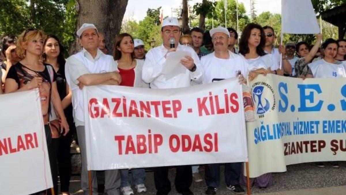 GAZİANTEP, Kırkayak Parkı’nda Gaziantep- Kilis Tabip Odası, Sağlık ve Sosyal Hizmet Emekçileri Sendikası, Genel Sağlık İş ve Gaziantep Aile Sağlığı Elemanları Derneği üyeleri, eylemlerinde aile hekimlerinin cumartesi nöbetlerini ve sağlık çalışanlarının çalışma koşullarını protesto etti. Grup adına açıklama yapan Gaziantep- Kilis Tabip Odası Başkanı Hamza Ağça, halkın iyi hizmet alma hakkını ortadan kaldıran, çalışanları uzun saatler performans ölçeğiyle çalıştıran sağlık politikalarının sürdürülemez hale geldiğini iddia etti. İş haklarının iyileştirilmesini isteyen Ağça, "Sağlık Bakanlığı çalışanlarını gazla ve esnek çalıştırmak için her türlü haksız, hukuksuz yola başvuruyor. Kazanılmış hakları için aylarca mücadele eden sağlık çalışanlarına baskı uyguluyor. Baskılar işe yaramayınca çalınanları işten atmak için ceza puanlarını dört katına çıkardılar" dedi.