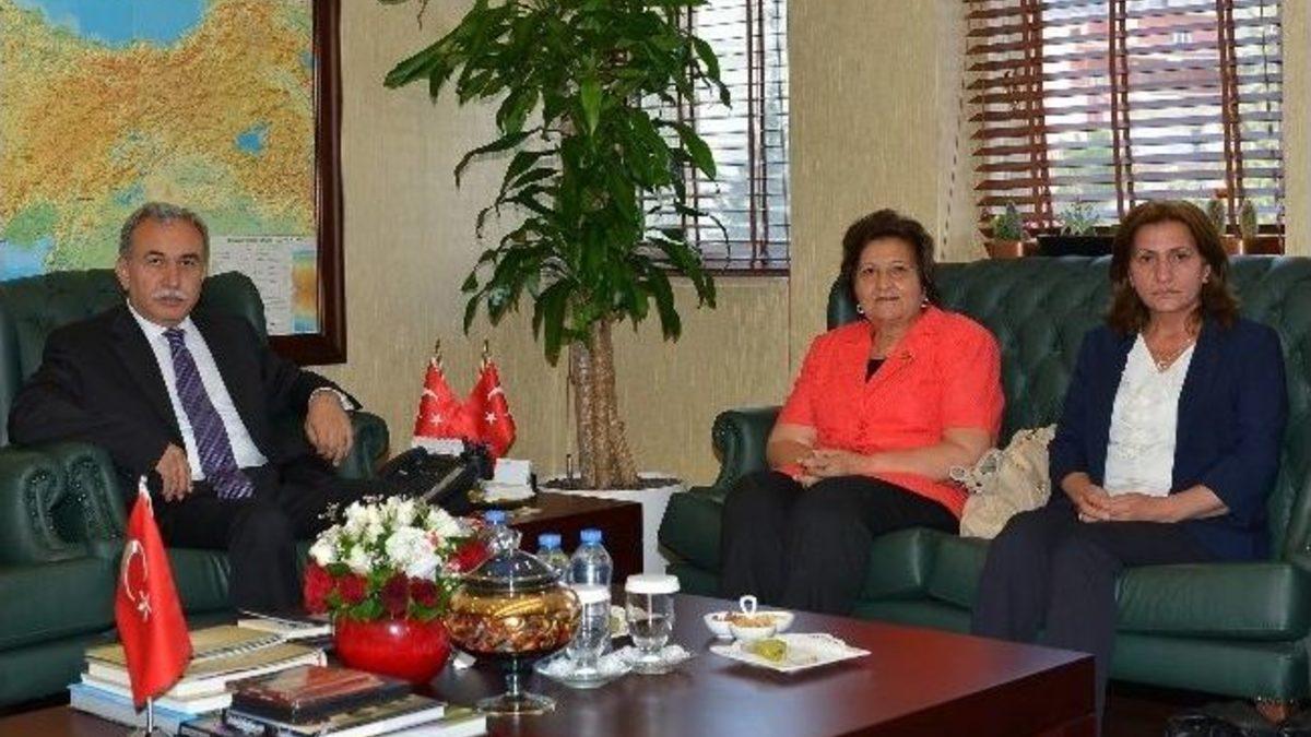 Türkiye Harp Malulü Gaziler, Şehit, Dul ve Yetimleri Derneği Başkanı Melahat Ongun ile derneğin yönetim kurulu üyeleri, Vali Mustafa Büyük’ü makamında ziyaret ederek, görevinde başarılar diledi.Vali Mustafa Büyük’e, ‘hayırlı olsun’ temennisinde bulunan Dernek Başkanı Melahat Ongun, ziyaret sırasında yaptığı açıklamada, Vali Mustafa Büyük’ün Adana’daki görev süresi boyunca, başarılı çalışmaları imza atacağına inandığını söyledi.Aynı zamanda emekli öğretmen olan Türkiye Harp Malulü Gaziler, Şehit, Dul ve Yetimleri Derneği Başkanı Melahat Ongun, ziyaret sırasında yaptığı konuşmada, derneğin amacı ve gerçekleştirdiği çalışmalar hakkında da çeşitli bilgiler verdi.Vali Büyük ise, vatan için canlarını veren şehitlerin ve bu uğurda mücadele vermiş olan gazilerin, milletin gönlünde daima farklı bir mertebede olduğuna vurgu yaptı.“Şehitlerimizi, şehit yakınlarımızı, gazilerimizi, vazife malullerimizi baş tacı ederek, layık oldukları saygı ve sevgiyi eksiksiz olarak yerine getirmek boynumuzun borcudur” diyen Vali Mustafa Büyük, şehit ve gazi derneklerinin sorunlarının giderilmesi ve taleplerinin karşılanmasında, üzerlerine düşen her türlü görevi yerine getirmeye kararlı olduklarını sözlerine ekledi.