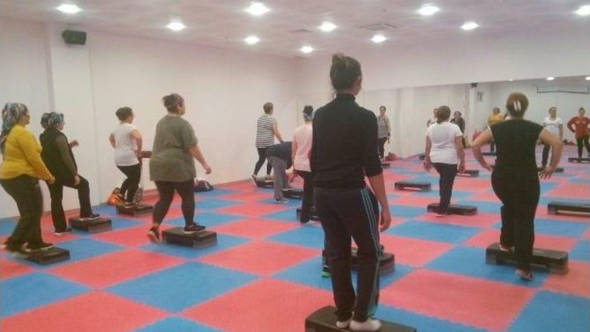 Gebzeli hanımlar, boş zamanlarını Gebze Belediyesi İstasyon Bilim ve Sanat Merkezi salonunda spor yaparak değerlendiriyor.Kocaeli...