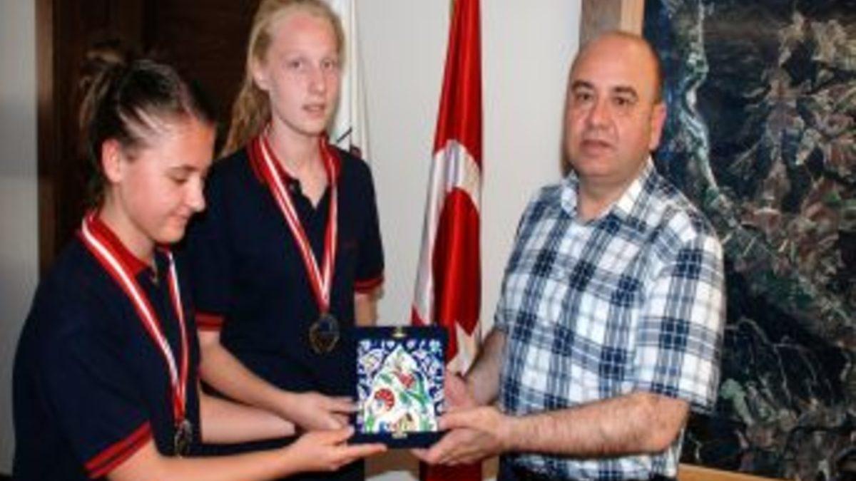 Başkan Saraoğlu, yarışmalarda altın madalya kazanan Sevilay Ergin ve Sümeyye Nur Kaynak'a plaket takdim etti ve çeşitli hediyeler vererek sevindirdi.
