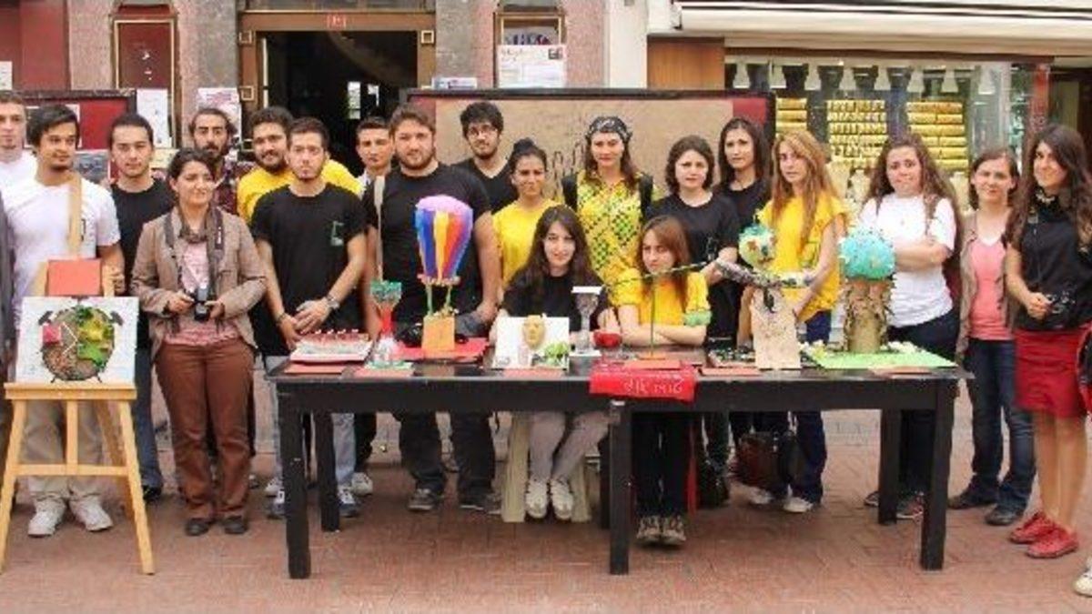 BÜ öğrencileri tarafından hazırlanan sergide, Peyzaj bölümü 3. sınıf öğrenci Zuhal Kaya’nın hazırladığı geri dönüşüm temalı el parmakları maketi katılımcılar tarafından büyük ilgi gördü. Çalışmalarında geri dönüşüm temalı bir süreç takip ettiklerini ifade eden öğrenci Kaya, “Çalışmamızda geri dönüşüm temalı bir süreç takip etmekle beraber çıkış noktası olarak elin beş parmağı düşünülmüştür. Burada kullandığımız malzemeler atıktan yapılmıştır. Parmakların her birine değişik misyonlar yüklenmiştir. Baş parmak, gazete kağıtlarından kitaplara, işaret parmağı atık malzemelerden rüzgar güllerine, aorta parmak, kapaklardan engelli araçlarına, yüzük parmağı, camlardan heykellere, serçe parmağa da küçük kirleticilerden bitkisel duvara gibi misyonlar ekledik” dedi.