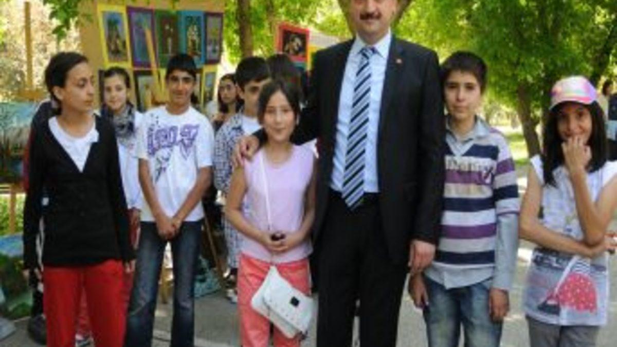 Mamak'ta bulunan 120 okul arasında iyi resim yapan öğrenciler Şafaktepe Parkı'nda bir araya gelerek resim sergisi düzenledi.